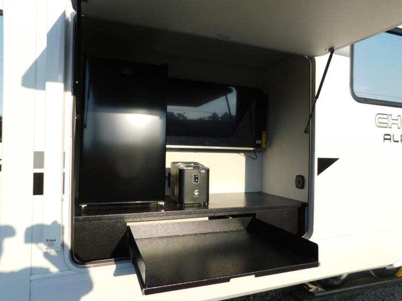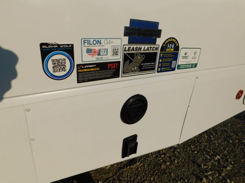 With any Cherokee Alpha Wolf travel trailer by Forest River you'll enjoy outstanding amenities, quality construction, and an affordable price. Each model features a "ToughBend" rigid skirt metal design, 5/8" tongue and groove plywood floor decking, and a "SuperTruss" roof structure that will hold up through years of camping memories. There is a pet friendly "clean sweep" floor design with no heat vents indoors, along with a super lumen lighting system, a 15,000 BTU quick cool central air conditioning, and many more comforts. There are many convenient exterior features such as, Leash Latch pet safety technology, an outside shower with hot and cold water, and exterior steps with oversized landing and quick release. The Weather Guard Package will add protection against the elements with an armored underbelly tank enclosure and forced air heat, thermo-control reflective safety glass windows, and upgraded laminated walls with block foam insulation!