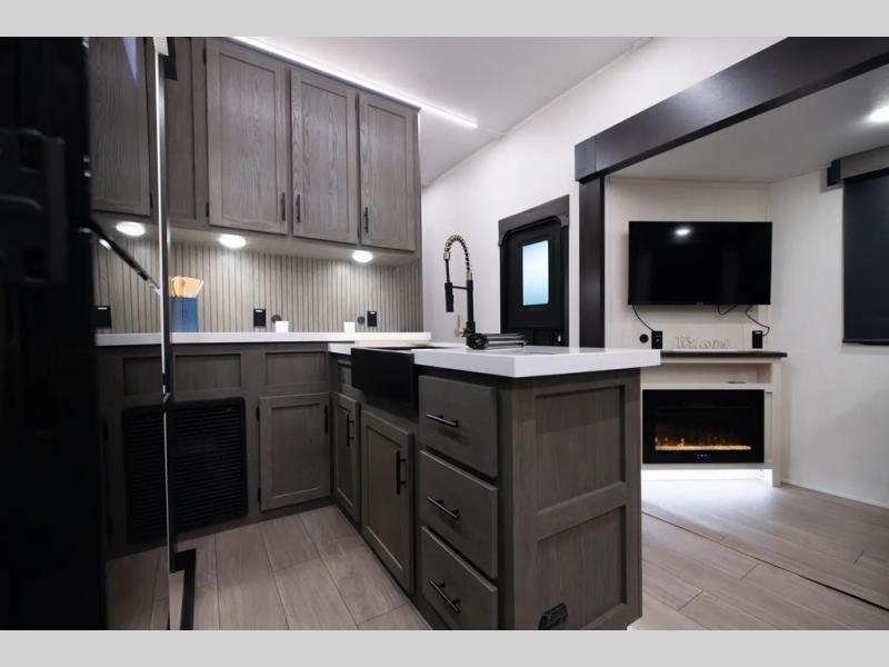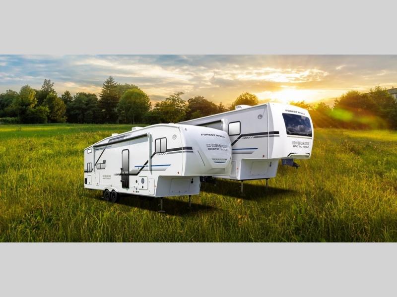 You'll have the very best time tackling outdoor adventures with the Forest River Cherokee Arctic Wolf fifth wheel! Each model has been constructed with a “ToughBend” rigid skirt metal design, Leash Latch pet safety technology, an outside shower with hot/cold water, and a 1x engineered wood “SuperTruss” roof structure with 3/8" decking for added durability. There is also an automatic leveling and stabilization system, slam latch storage doors with "Safety Stay" magnets, plus 12V heat pads on all holding tanks with help withstand colder temperatures. Inside, you'll love the solid surface kitchen countertops with underlighting, along with a carpetless floor design, and fully adjustable, slow rise, blackout roller shades. The on-demand tankless hot water heater will provide endless hot water and the central A/C unit with Quick Cool will ensure your comfort during those hot summer camping months. There are many more stand-out features found on these fifth wheels; check them out!