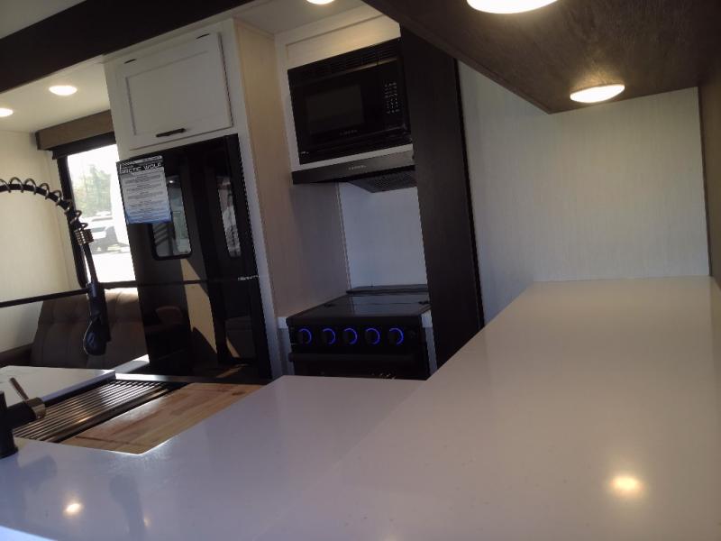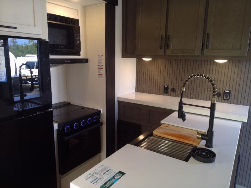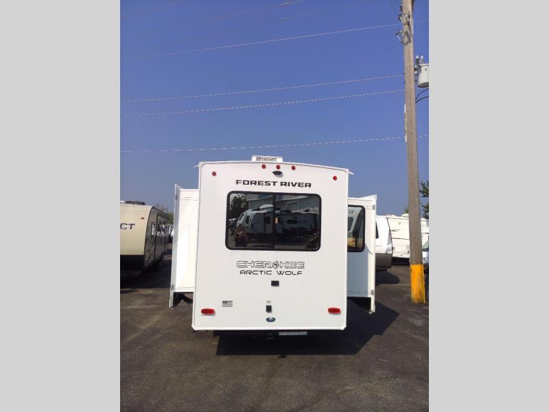 You'll have the very best time tackling outdoor adventures with the Forest River Cherokee Arctic Wolf fifth wheel! Each model has been constructed with a “ToughBend” rigid skirt metal design, Leash Latch pet safety technology, an outside shower with hot/cold water, and a 1x engineered wood “SuperTruss” roof structure with 3/8" decking for added durability. There is also an automatic leveling and stabilization system, slam latch storage doors with "Safety Stay" magnets, plus 12V heat pads on all holding tanks with help withstand colder temperatures. Inside, you'll love the solid surface kitchen countertops with underlighting, along with a carpetless floor design, and fully adjustable, slow rise, blackout roller shades. The on-demand tankless hot water heater will provide endless hot water and the central A/C unit with Quick Cool will ensure your comfort during those hot summer camping months. There are many more stand-out features found on these fifth wheels; check them out!