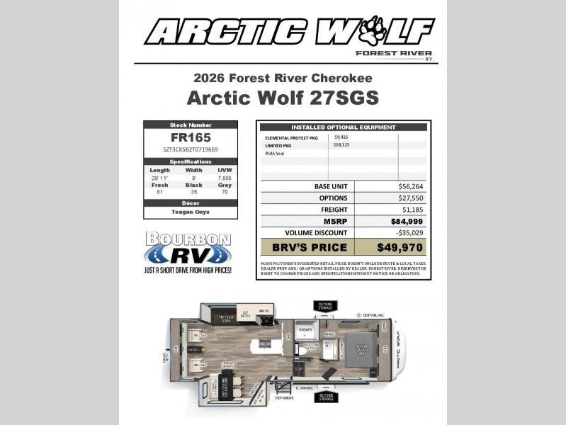 Forest River Cherokee Arctic Wolf 27SGS Highlights: