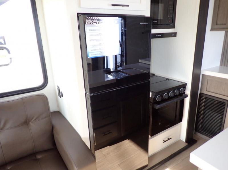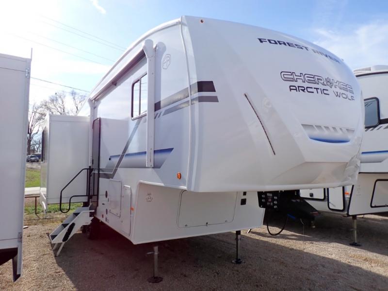 You'll have the very best time tackling outdoor adventures with the Forest River Cherokee Arctic Wolf fifth wheel! Each model has been constructed with a “ToughBend” rigid skirt metal design, Leash Latch pet safety technology, an outside shower with hot/cold water, and a 1x engineered wood “SuperTruss” roof structure with 3/8" decking for added durability. There is also an automatic leveling and stabilization system, plus 12V heat pads on all holding tanks with help withstand colder temperatures. Inside, you'll love the solid surface kitchen countertops, along with a carpetless floor design, and fully adjustable, slow rise, blackout roller shades. The on-demand tankless hot water heater will provide endless hot water and the central A/C unit with Quick Cool will ensure your comfort during those hot summer camping months. There are many more stand-out features found on these fifth wheels; check them out!