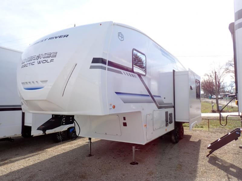 The Cherokee Arctic Wolf 27SGS might possible be the best value-focused couple's fifth wheel on the market. It's a floorplan that just works well! Less than 30' and easily half-ton towable, yet the Arctic Wolf 27SGS doesn't sacrifice the comfort you expect. Two large opposing slideouts make for a huge living room. The kitchen has a convenient wrap-around counter and plenty of room to make your favorite meal. You will love this camper... it's bright and room and feels like home from the first time you step inside.
