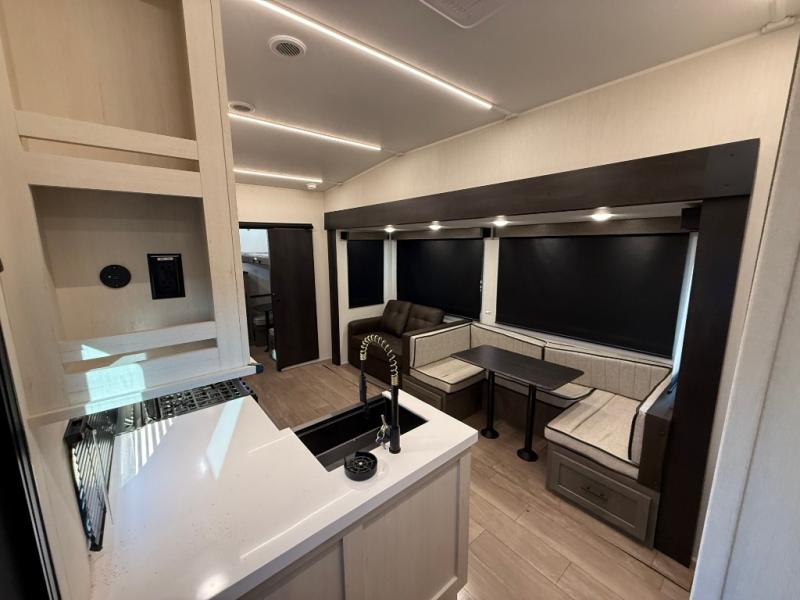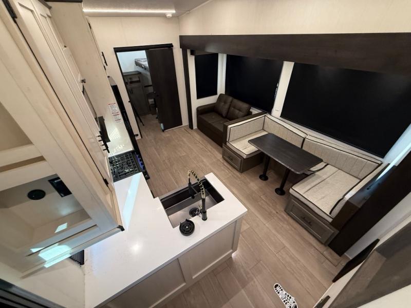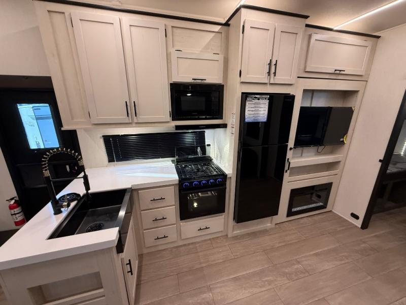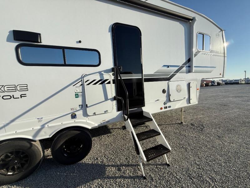 You'll have the very best time tackling outdoor adventures with the Forest River Cherokee Arctic Wolf fifth wheel! Each model has been constructed with a “ToughBend” rigid skirt metal design, Leash Latch pet safety technology, an outside shower with hot/cold water, and a 1x engineered wood “SuperTruss” roof structure with 3/8" decking for added durability. There is also an automatic leveling and stabilization system, plus 12V heat pads on all holding tanks with help withstand colder temperatures. Inside, you'll love the solid surface kitchen countertops, along with a carpetless floor design, and fully adjustable, slow rise, blackout roller shades. The on-demand tankless hot water heater will provide endless hot water and the central A/C unit with Quick Cool will ensure your comfort during those hot summer camping months. There are many more stand-out features found on these fifth wheels; check them out!