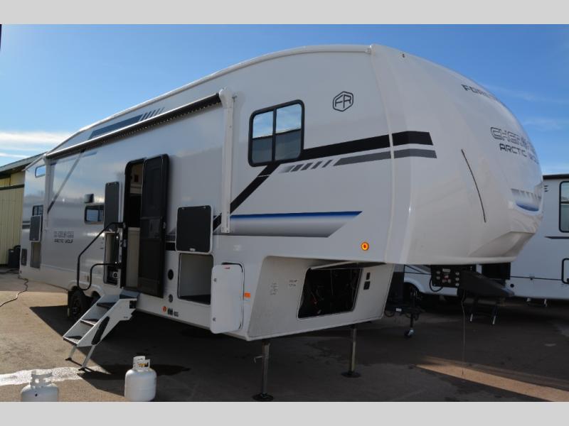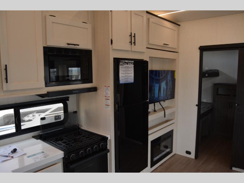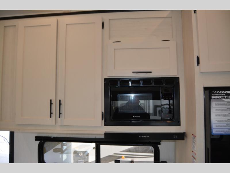 You'll have the very best time tackling outdoor adventures with the Forest River Cherokee Arctic Wolf fifth wheel! Each model has been constructed with a “ToughBend” rigid skirt metal design, Leash Latch pet safety technology, an outside shower with hot/cold water, and a 1x engineered wood “SuperTruss” roof structure with 3/8" decking for added durability. There is also an automatic leveling and stabilization system, plus 12V heat pads on all holding tanks with help withstand colder temperatures. Inside, you'll love the solid surface kitchen countertops, along with a carpetless floor design, and fully adjustable, slow rise, blackout roller shades. The on-demand tankless hot water heater will provide endless hot water and the central A/C unit with Quick Cool will ensure your comfort during those hot summer camping months. There are many more stand-out features found on these fifth wheels; check them out!
