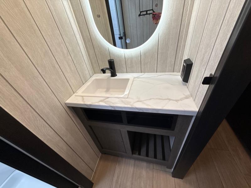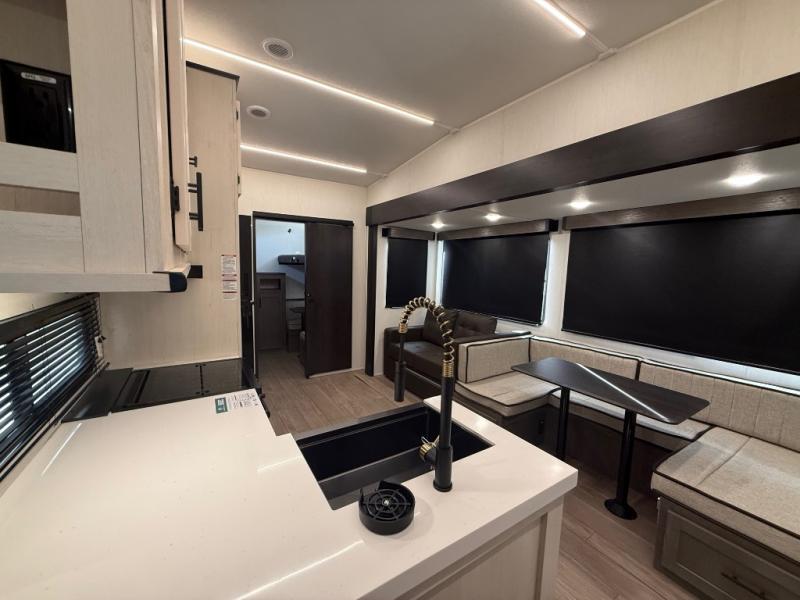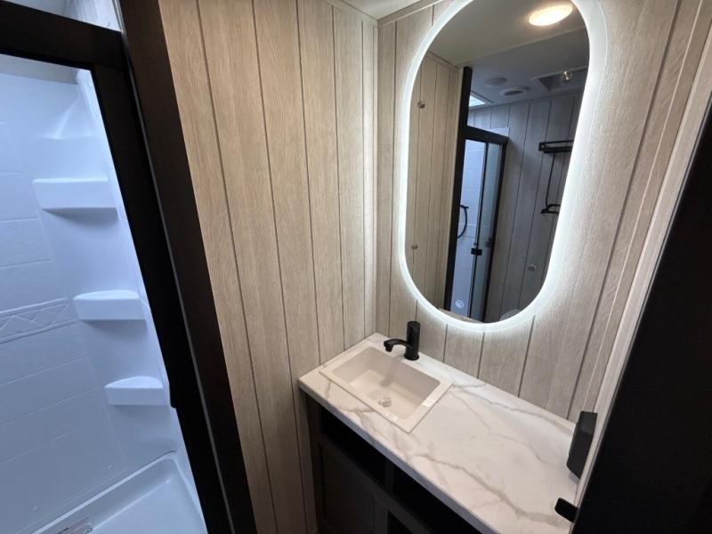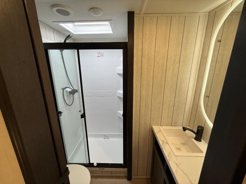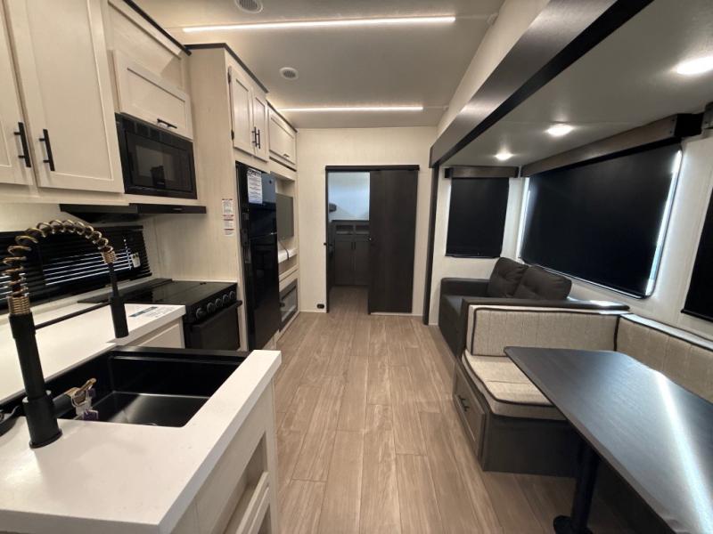 You'll have the very best time tackling outdoor adventures with the Forest River Cherokee Arctic Wolf fifth wheel! Each model has been constructed with a “ToughBend” rigid skirt metal design, Leash Latch pet safety technology, an outside shower with hot/cold water, and a 1x engineered wood “SuperTruss” roof structure with 3/8" decking for added durability. There is also an automatic leveling and stabilization system, plus 12V heat pads on all holding tanks with help withstand colder temperatures. Inside, you'll love the solid surface kitchen countertops, along with a carpetless floor design, and fully adjustable, slow rise, blackout roller shades. The on-demand tankless hot water heater will provide endless hot water and the central A/C unit with Quick Cool will ensure your comfort during those hot summer camping months. There are many more stand-out features found on these fifth wheels; check them out!