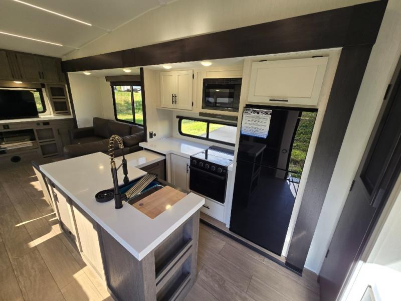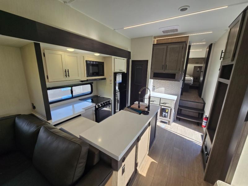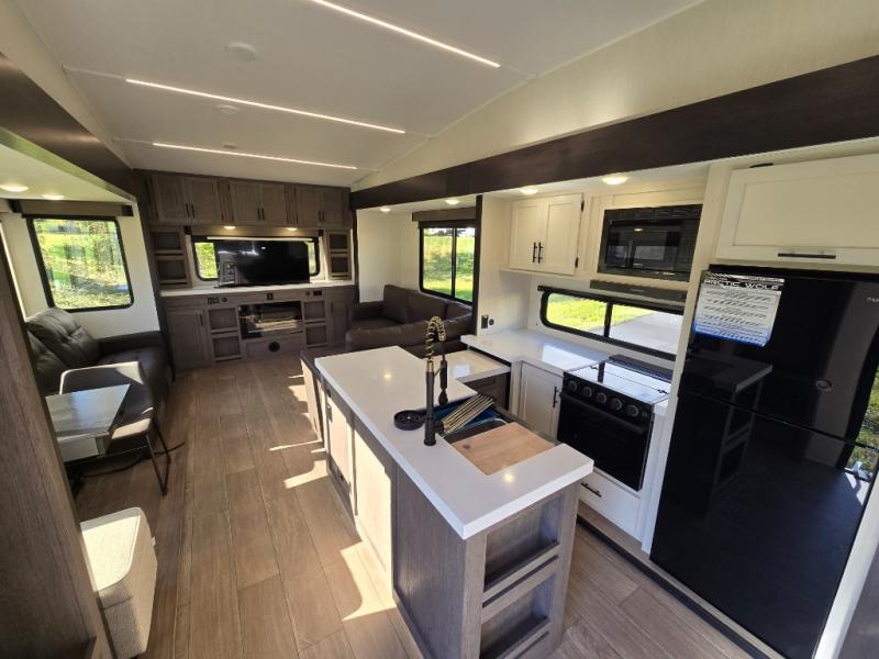 You'll have the very best time tackling outdoor adventures with the Forest River Cherokee Arctic Wolf fifth wheel! Each model has been constructed with a “ToughBend” rigid skirt metal design, Leash Latch pet safety technology, an outside shower with hot/cold water, and a 1x engineered wood “SuperTruss” roof structure with 3/8" decking for added durability. There is also an automatic leveling and stabilization system, plus 12V heat pads on all holding tanks with help withstand colder temperatures. Inside, you'll love the solid surface kitchen countertops, along with a carpetless floor design, and fully adjustable, slow rise, blackout roller shades. The on-demand tankless hot water heater will provide endless hot water and the central A/C unit with Quick Cool will ensure your comfort during those hot summer camping months. There are many more stand-out features found on these fifth wheels; check them out!