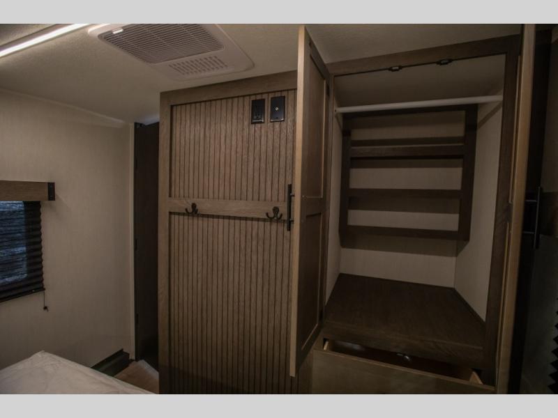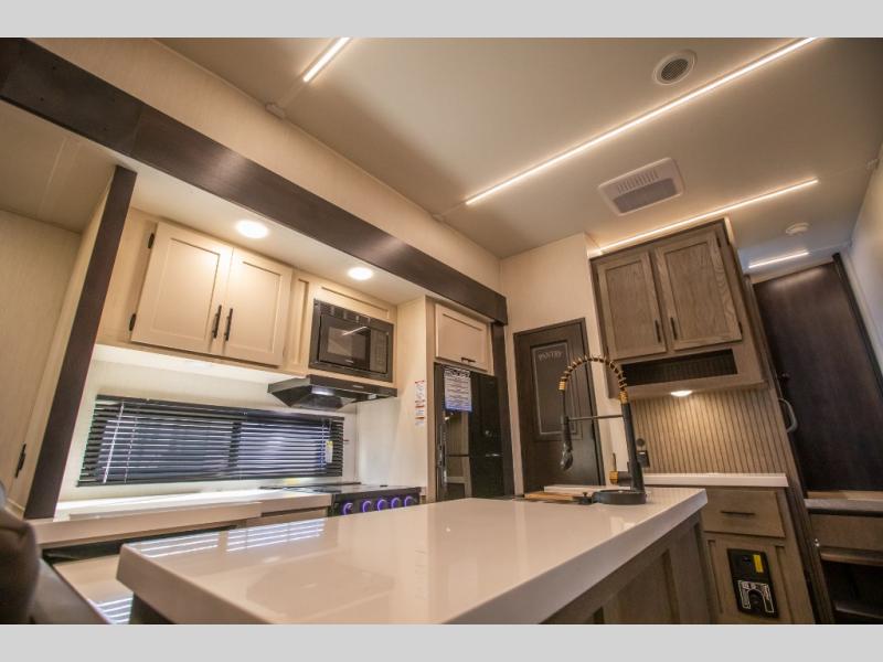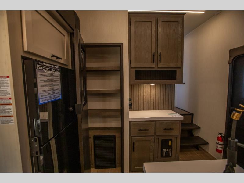 You'll have the very best time tackling outdoor adventures with the Forest River Cherokee Arctic Wolf fifth wheel! Each model has been constructed with a “ToughBend” rigid skirt metal design, Leash Latch pet safety technology, an outside shower with hot/cold water, and a 1x engineered wood “SuperTruss” roof structure with 3/8" decking for added durability. There is also an automatic leveling and stabilization system, plus 12V heat pads on all holding tanks with help withstand colder temperatures. Inside, you'll love the solid surface kitchen countertops, along with a carpetless floor design, and fully adjustable, slow rise, blackout roller shades. The on-demand tankless hot water heater will provide endless hot water and the central A/C unit with Quick Cool will ensure your comfort during those hot summer camping months. There are many more stand-out features found on these fifth wheels; check them out!