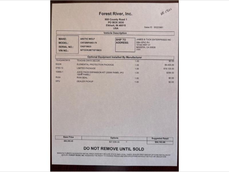 Forest River Cherokee Arctic Wolf fifth wheel 289PANO highlights: