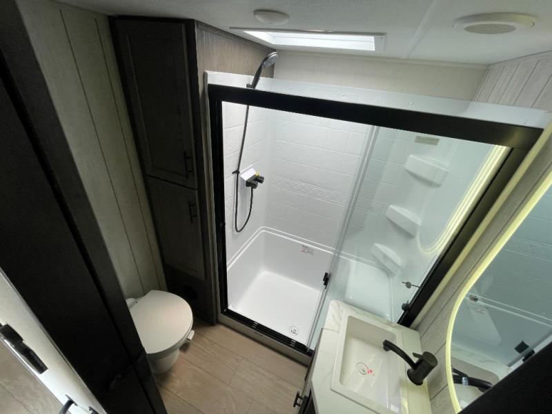 You will have amazing residential comfort in the Forest River Cherokee Arctic Wolf fifth wheels! These bed slide units have a “SuperStor” basement storage compartment to allow you to bring more gear, and they have been constructed with a “ToughBend” rigid skirt metal design, a 1x engineered wood “SuperTruss” roof structure with 3/8" decking, and a 5/8” tongue-and-groove plywood floor decking. Each model includes Leash Latch pet safety technology, an outside shower with hot/cold water, preparations for an exterior TV, and motion-sensing lighting. The supersized central air conditioning unit (15,000 BTU) with quick cool and second oversized 15,000 BTU ducted A/C will cool your unit down in a snap when you camp in the hot summer months.