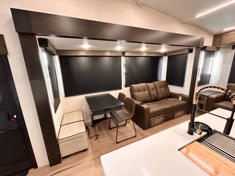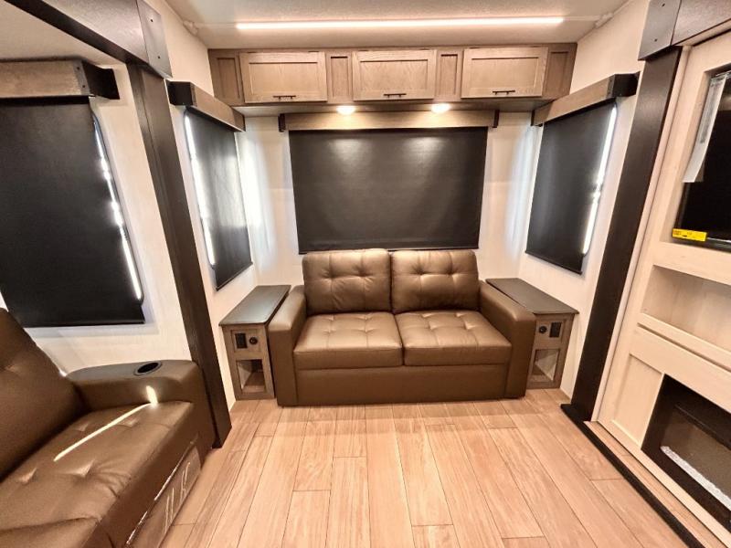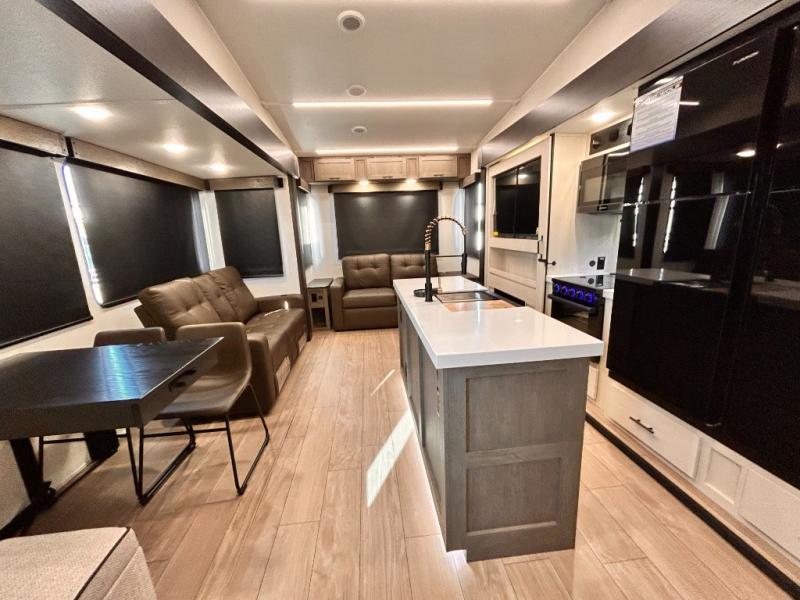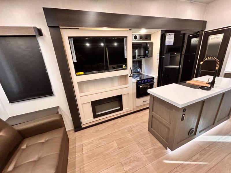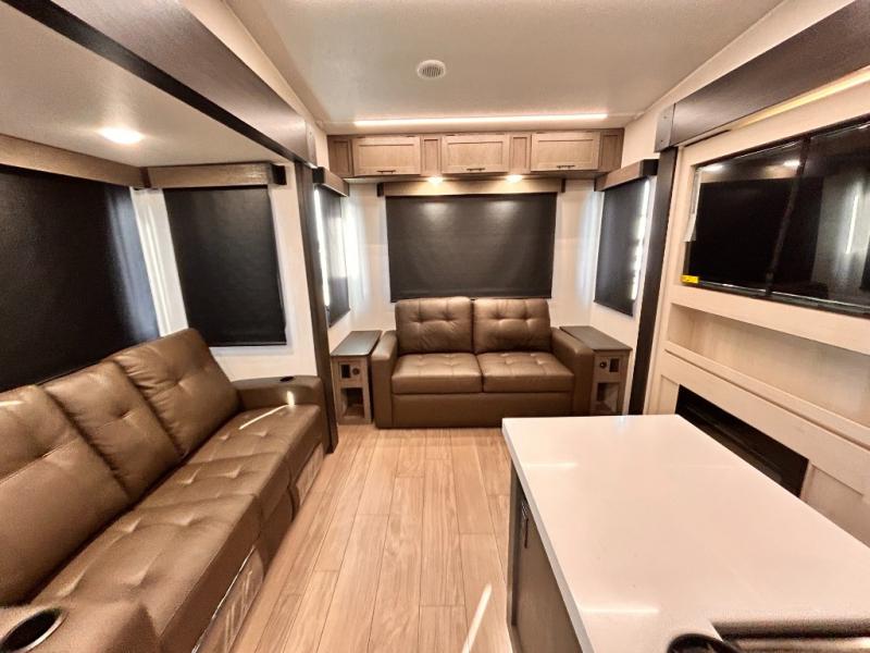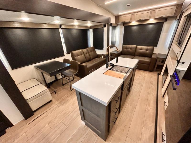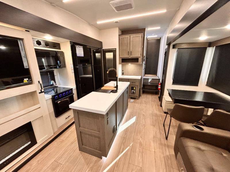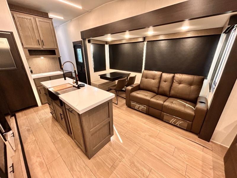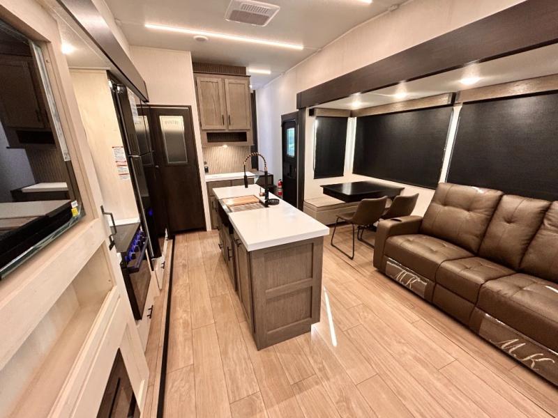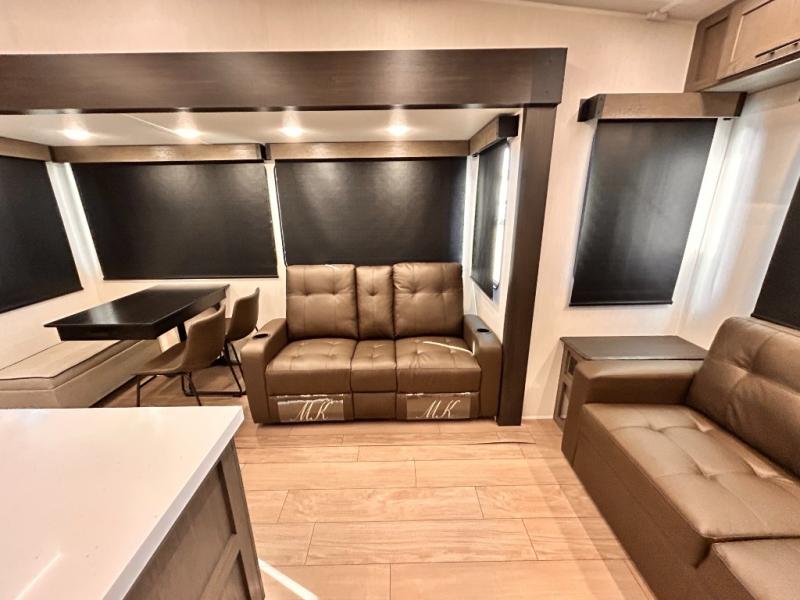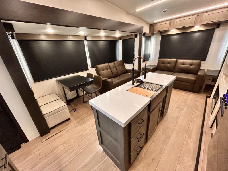 REAR LIVING / THEATER SEATING / HIDDEN PANTRY / 3 SLIDE OUT / KING BED / SOLAR PANEL SYSTEM
