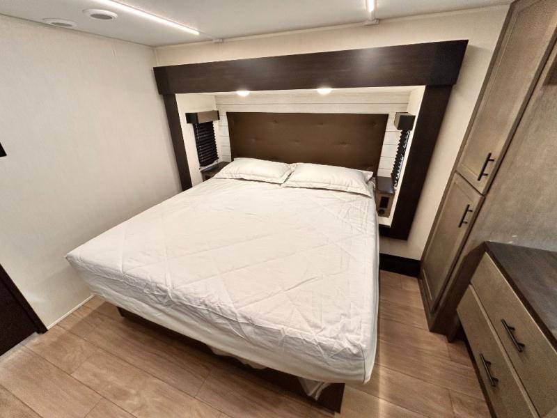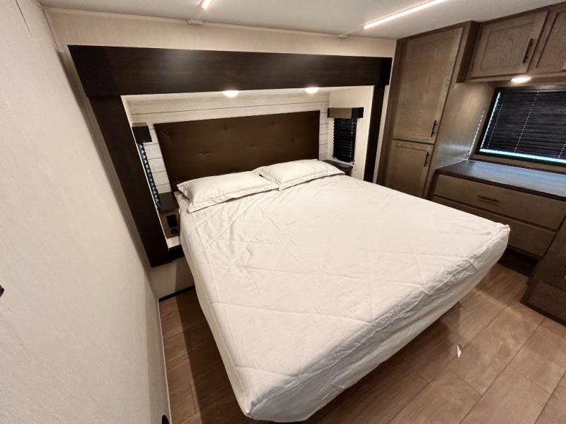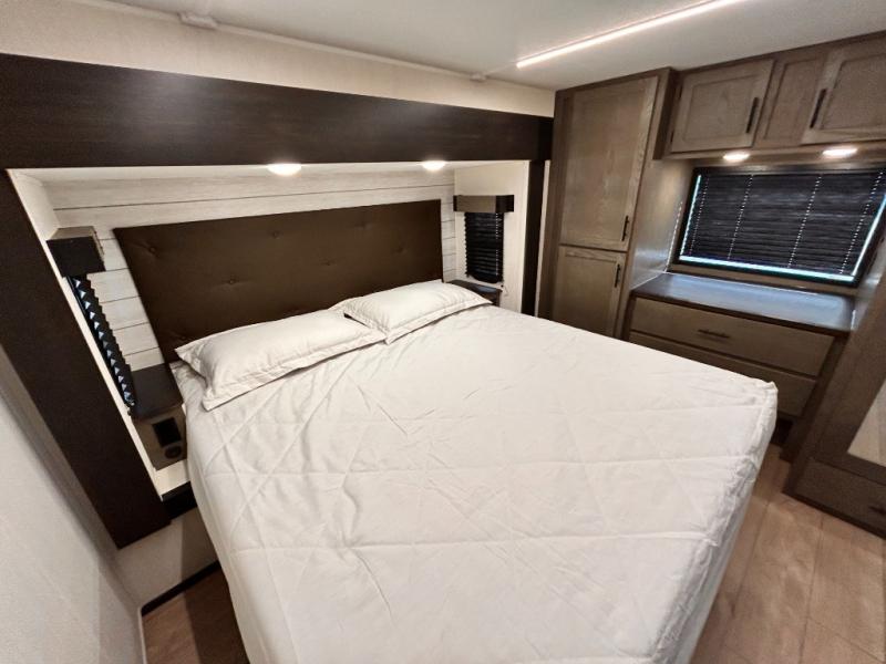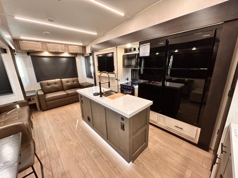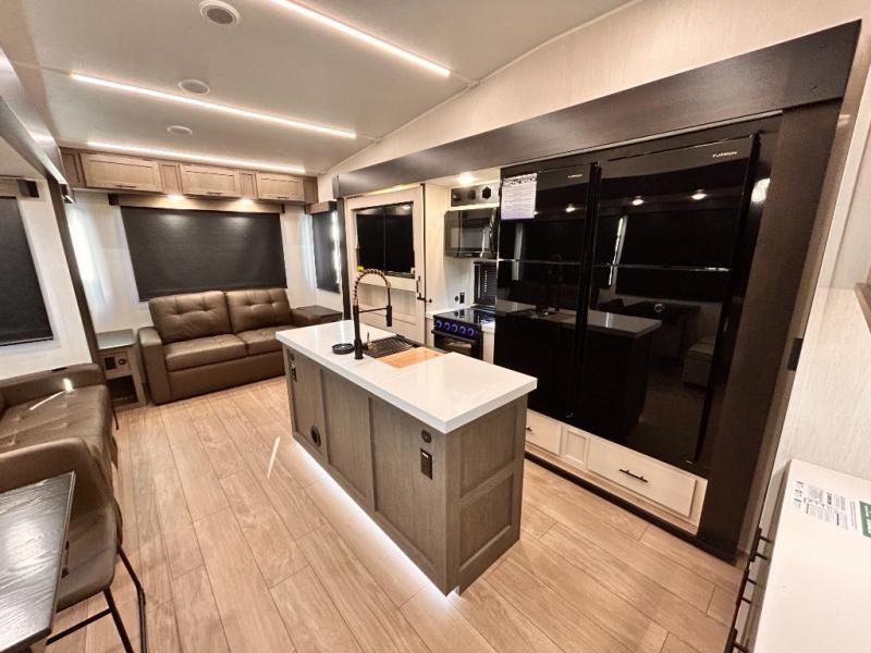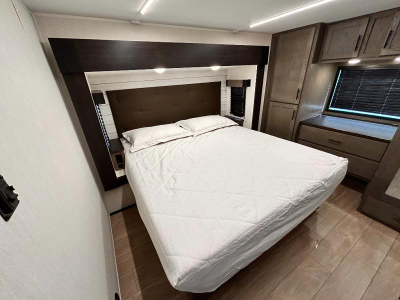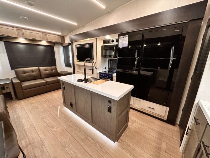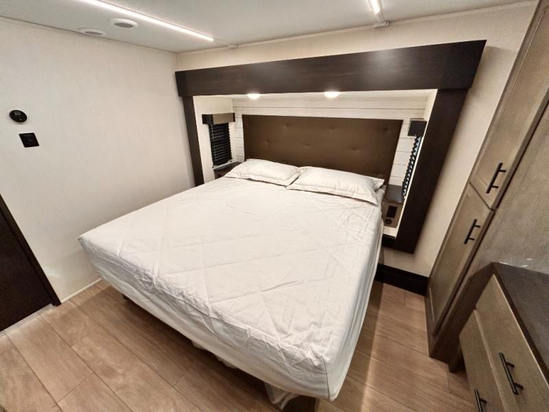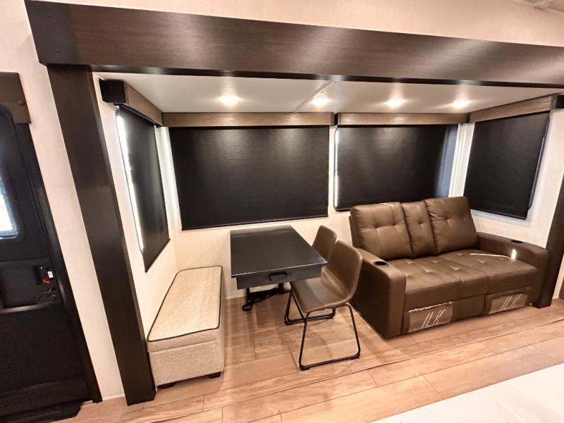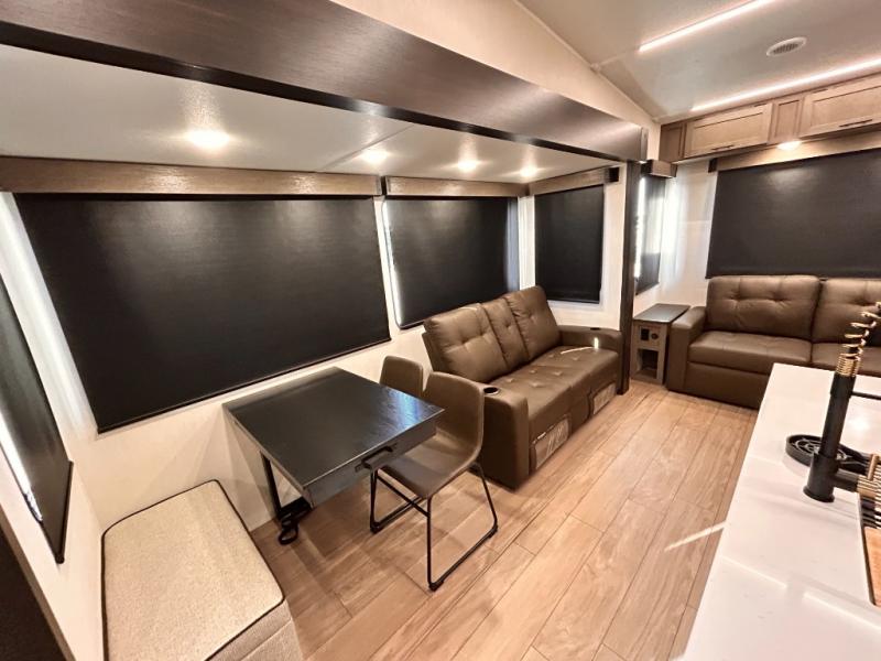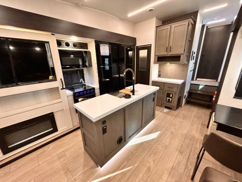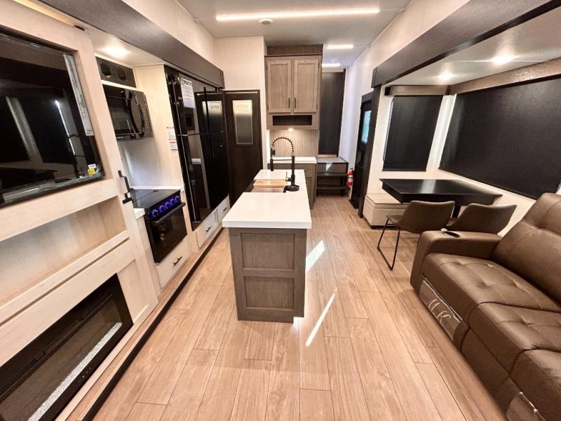 REAR LIVING / THEATER SEATING / HIDDEN PANTRY / 3 SLIDE OUT / KING BED / SOLAR PANEL SYSTEM