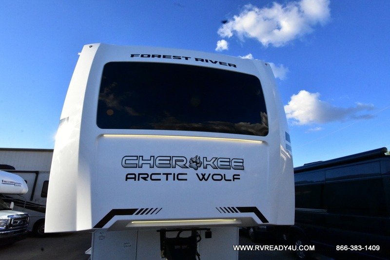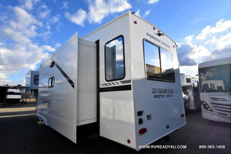 You will have amazing residential comfort in the Forest River Cherokee Arctic Wolf fifth wheels! These bed slide units have a “SuperStor” basement storage compartment to allow you to bring more gear, and they have been constructed with a “ToughBend” rigid skirt metal design, a 1x engineered wood “SuperTruss” roof structure with 3/8" decking, and a 5/8” tongue-and-groove plywood floor decking. Each model includes Leash Latch pet safety technology, an outside shower with hot/cold water, preparations for an exterior TV, and Super-Lumen Lighting System with Dimmer. The supersized central air conditioning unit (15,000 BTU) with quick cool and second oversized 15,000 BTU ducted A/C will cool your unit down in a snap when you camp in the hot summer months.