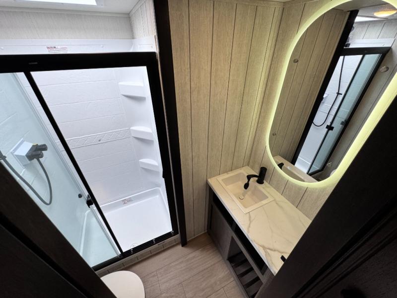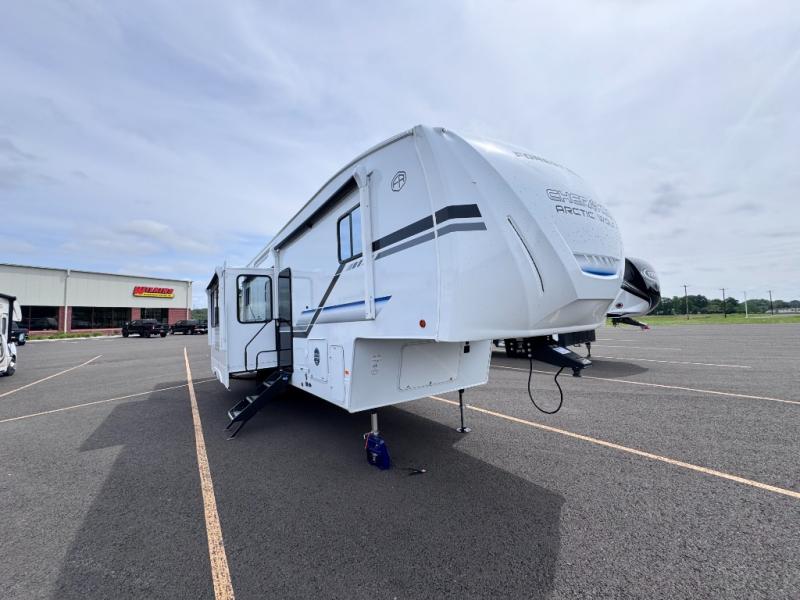 You'll have the very best time tackling outdoor adventures with the Forest River Cherokee Arctic Wolf fifth wheel! Each model has been constructed with a “ToughBend” rigid skirt metal design, Leash Latch pet safety technology, an outside shower with hot/cold water, and a 1x engineered wood “SuperTruss” roof structure with 3/8" decking for added durability. There is also an automatic leveling and stabilization system, slam latch storage doors with "Safety Stay" magnets, plus 12V heat pads on all holding tanks with help withstand colder temperatures. Inside, you'll love the solid surface kitchen countertops with underlighting, along with a carpetless floor design, and fully adjustable, slow rise, blackout roller shades. The on-demand tankless hot water heater will provide endless hot water and the central A/C unit with Quick Cool will ensure your comfort during those hot summer camping months. There are many more stand-out features found on these fifth wheels; check them out!