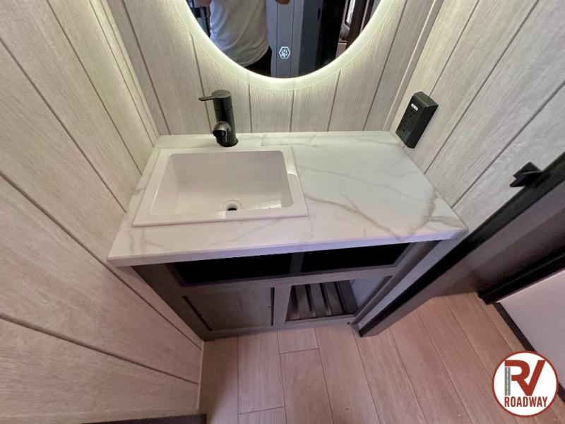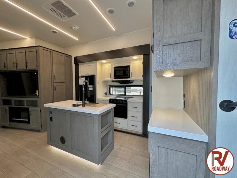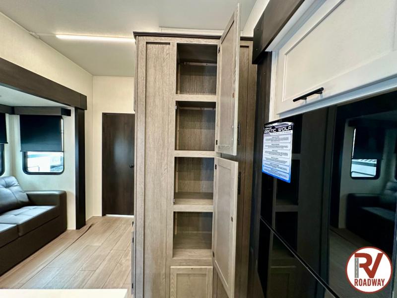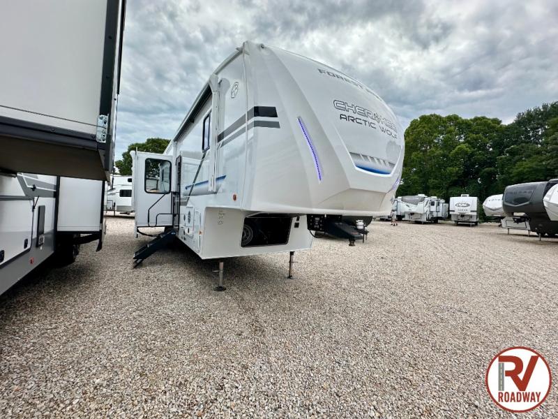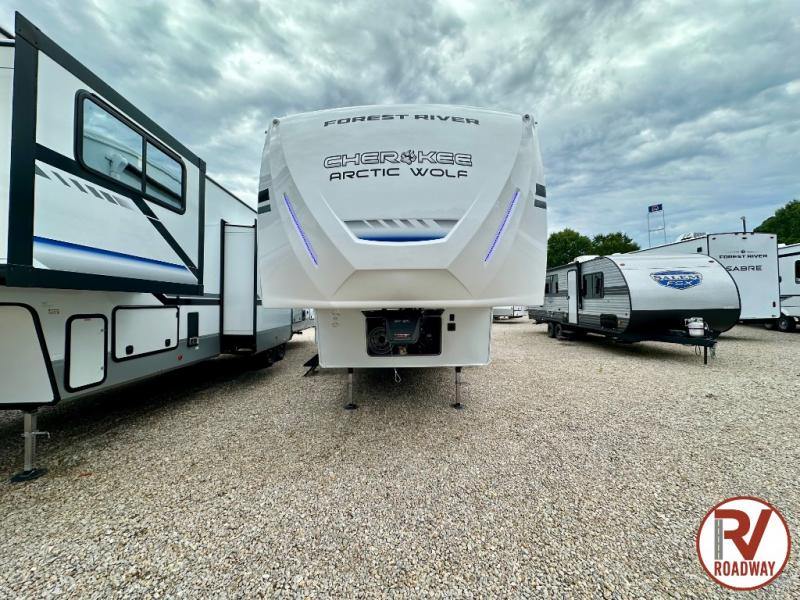 You'll have the very best time tackling outdoor adventures with the Forest River Cherokee Arctic Wolf fifth wheel! Each model has been constructed with a “ToughBend” rigid skirt metal design, Leash Latch pet safety technology, an outside shower with hot/cold water, and a 1x engineered wood “SuperTruss” roof structure with 3/8" decking for added durability. There is also an automatic leveling and stabilization system, slam latch storage doors with "Safety Stay" magnets, plus 12V heat pads on all holding tanks with help withstand colder temperatures. Inside, you'll love the solid surface kitchen countertops with underlighting, along with a carpetless floor design, and fully adjustable, slow rise, blackout roller shades. The on-demand tankless hot water heater will provide endless hot water and the central A/C unit with Quick Cool will ensure your comfort during those hot summer camping months. There are many more stand-out features found on these fifth wheels; check them out!