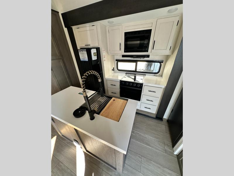 You'll have the very best time tackling outdoor adventures with the Forest River Cherokee Arctic Wolf fifth wheel! Each model has been constructed with a “ToughBend” rigid skirt metal design, Leash Latch pet safety technology, an outside shower with hot/cold water, and a 1x engineered wood “SuperTruss” roof structure with 3/8" decking for added durability. There is also an automatic leveling and stabilization system, slam latch storage doors with "Safety Stay" magnets, plus 12V heat pads on all holding tanks with help withstand colder temperatures. Inside, you'll love the solid surface kitchen countertops with underlighting, along with a carpetless floor design, and fully adjustable, slow rise, blackout roller shades. The on-demand tankless hot water heater will provide endless hot water and the central A/C unit with Quick Cool will ensure your comfort during those hot summer camping months. There are many more stand-out features found on these fifth wheels; check them out!