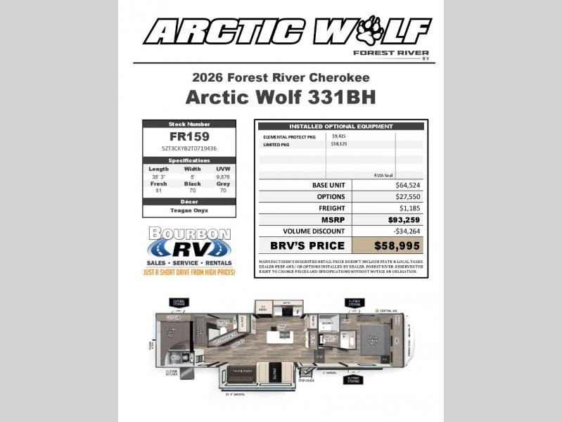 Forest River Cherokee Arctic Wolf fifth wheel 331BH highlights: