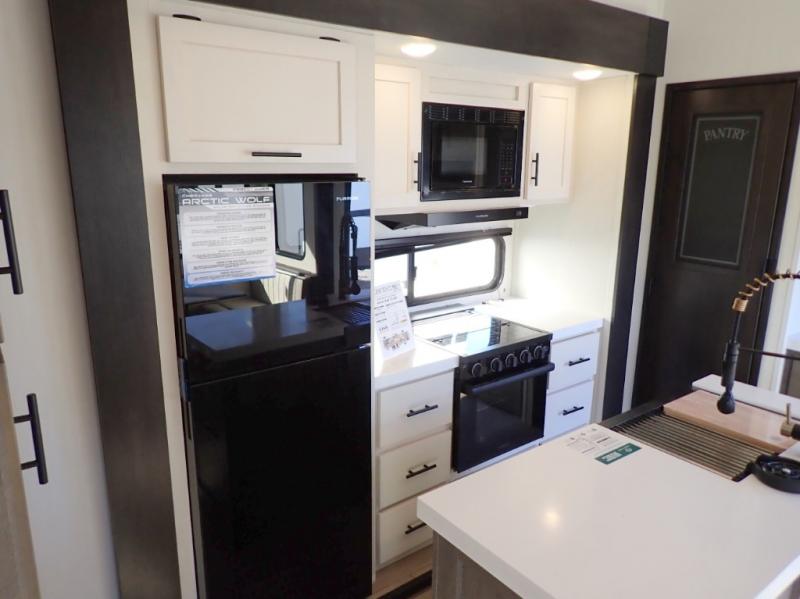 You'll have the very best time tackling outdoor adventures with the Forest River Cherokee Arctic Wolf fifth wheel! Each model has been constructed with a “ToughBend” rigid skirt metal design, Leash Latch pet safety technology, an outside shower with hot/cold water, and a 1x engineered wood “SuperTruss” roof structure with 3/8" decking for added durability. There is also an automatic leveling and stabilization system, plus 12V heat pads on all holding tanks with help withstand colder temperatures. Inside, you'll love the solid surface kitchen countertops, along with a carpetless floor design, and fully adjustable, slow rise, blackout roller shades. The on-demand tankless hot water heater will provide endless hot water and the central A/C unit with Quick Cool will ensure your comfort during those hot summer camping months. There are many more stand-out features found on these fifth wheels; check them out!