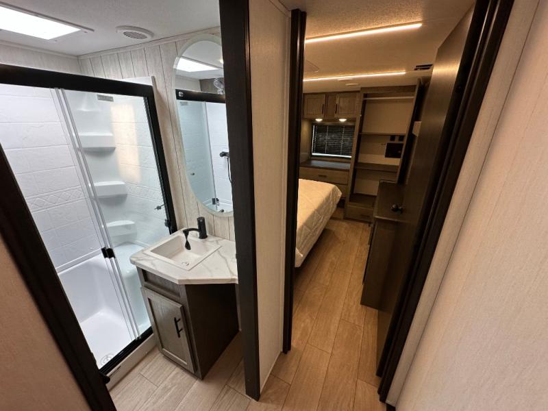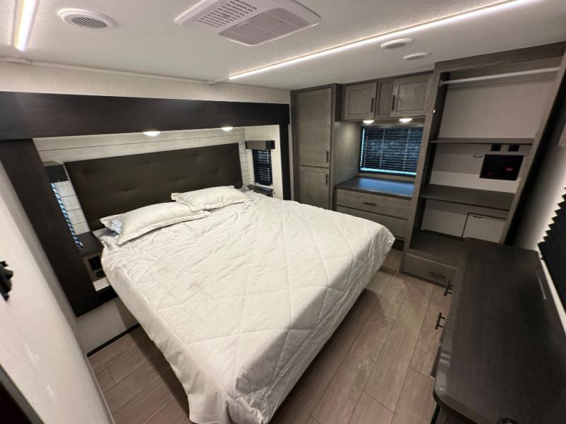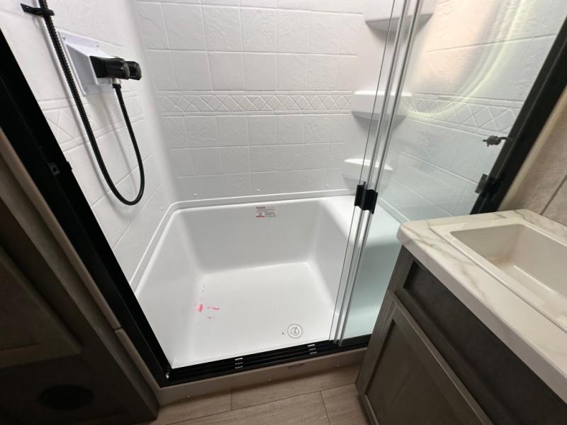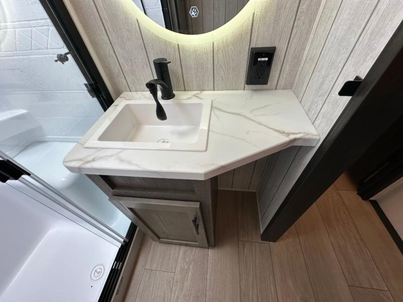 You will have amazing residential comfort in the Forest River Cherokee Arctic Wolf fifth wheels! These bed slide units have a “SuperStor” basement storage compartment to allow you to bring more gear, and they have been constructed with a “ToughBend” rigid skirt metal design, a 1x engineered wood “SuperTruss” roof structure with 3/8" decking, and a 5/8” tongue-and-groove plywood floor decking. Each model includes Leash Latch pet safety technology, an outside shower with hot/cold water, preparations for an exterior TV, and motion-sensing lighting. The supersized central air conditioning unit (15,000 BTU) with quick cool and second oversized 15,000 BTU ducted A/C will cool your unit down in a snap when you camp in the hot summer months.
