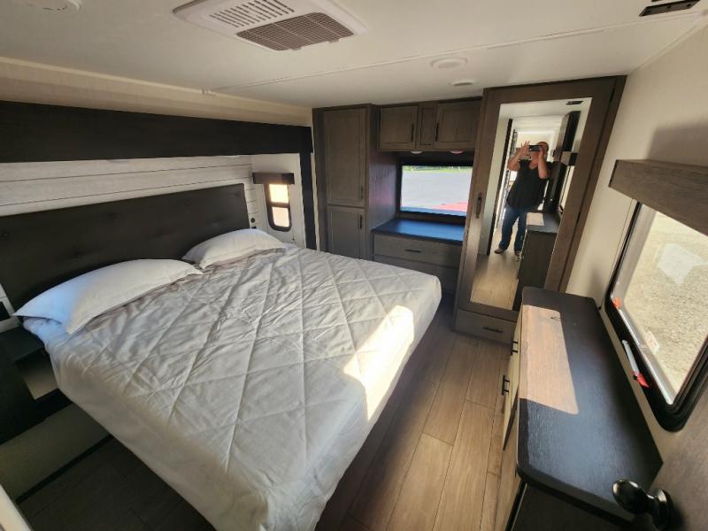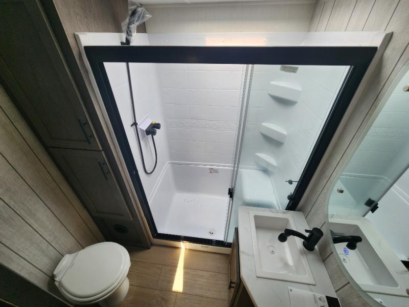 You will have amazing residential comfort in the Forest River Cherokee Arctic Wolf fifth wheels! These bed slide units have a “SuperStor” basement storage compartment to allow you to bring more gear, and they have been constructed with a “ToughBend” rigid skirt metal design, a 1x engineered wood “SuperTruss” roof structure with 3/8" decking, and a 5/8” tongue-and-groove plywood floor decking. Each model includes Leash Latch pet safety technology, an outside shower with hot/cold water and preparations for an exterior TV. The supersized central air conditioning unit (15,000 BTU) with quick cool and second oversized 15,000 BTU ducted A/C will cool your unit down in a snap when you camp in the hot summer months.