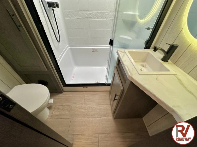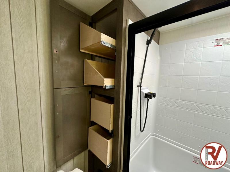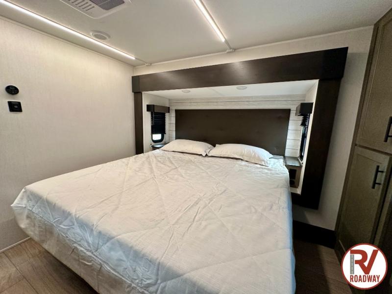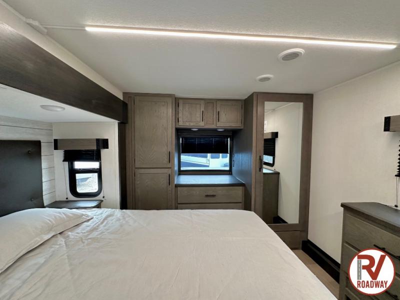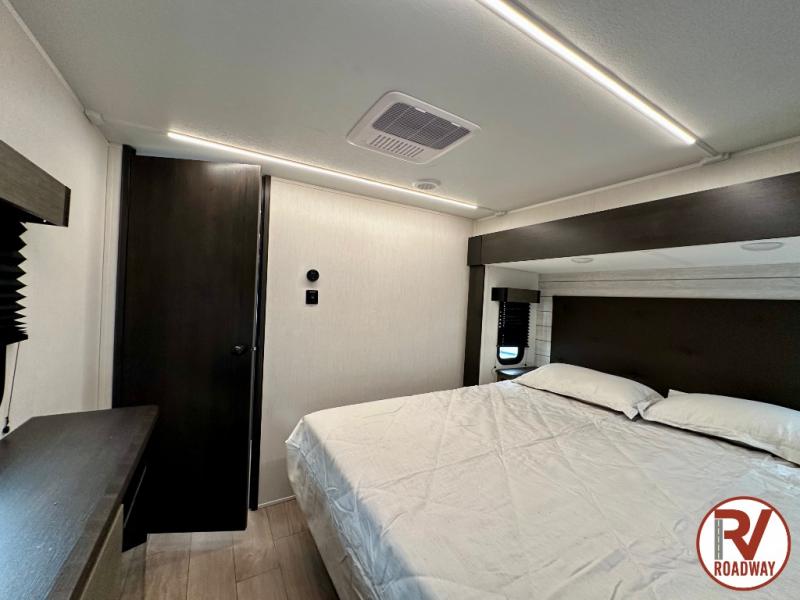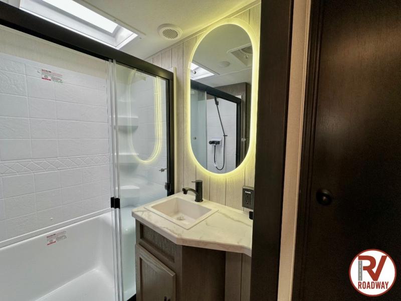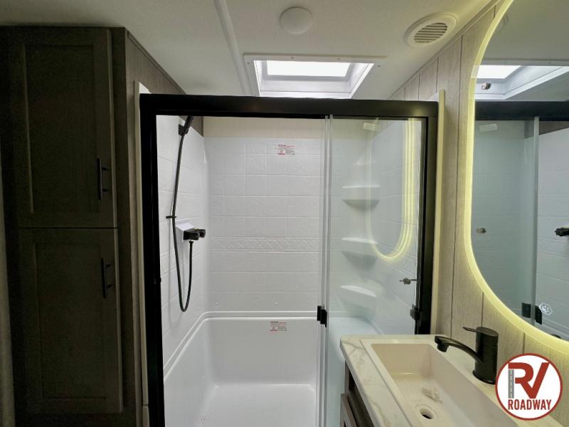 You will have amazing residential comfort in the Forest River Cherokee Arctic Wolf fifth wheels! These bed slide units have a “SuperStor” basement storage compartment to allow you to bring more gear, and they have been constructed with a “ToughBend” rigid skirt metal design, a 1x engineered wood “SuperTruss” roof structure with 3/8" decking, and a 5/8” tongue-and-groove plywood floor decking. Each model includes Leash Latch pet safety technology, an outside shower with hot/cold water, preparations for an exterior TV, and motion-sensing lighting. The supersized central air conditioning unit (15,000 BTU) with quick cool and second oversized 15,000 BTU ducted A/C will cool your unit down in a snap when you camp in the hot summer months.