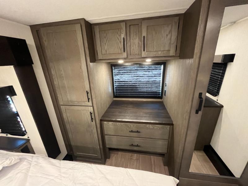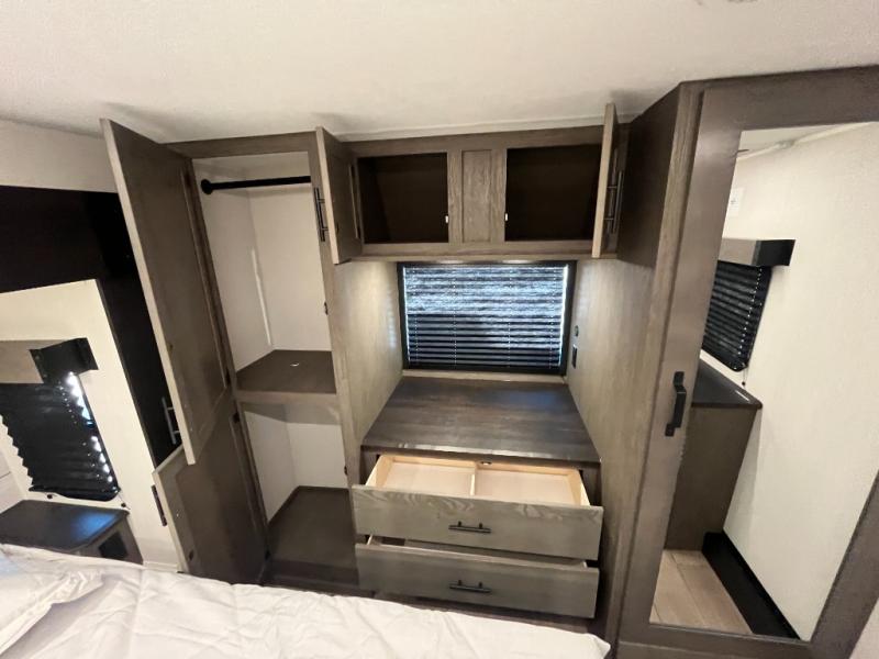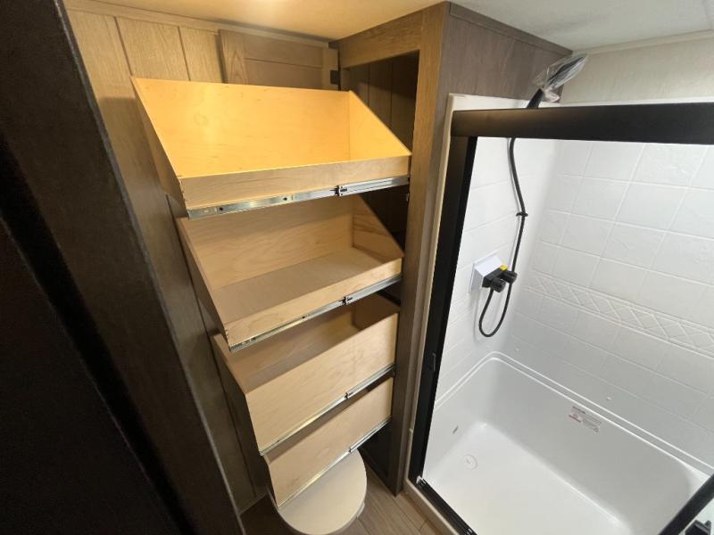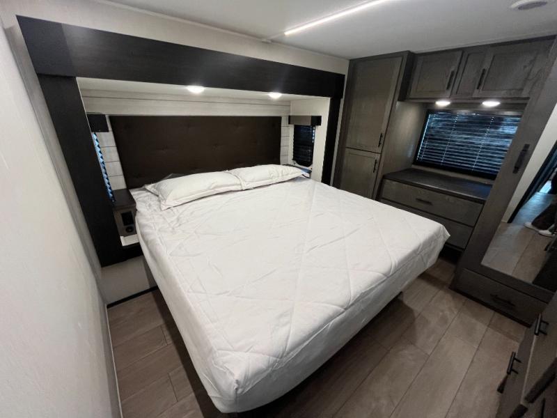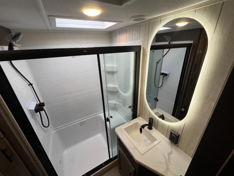 You will have amazing residential comfort in the Forest River Cherokee Arctic Wolf fifth wheels! These bed slide units have a “SuperStor” basement storage compartment to allow you to bring more gear, and they have been constructed with a “ToughBend” rigid skirt metal design, a 1x engineered wood “SuperTruss” roof structure with 3/8" decking, and a 5/8” tongue-and-groove plywood floor decking. Each model includes Leash Latch pet safety technology, an outside shower with hot/cold water and preparations for an exterior TV. The supersized central air conditioning unit (15,000 BTU) with quick cool and second oversized 15,000 BTU ducted A/C will cool your unit down in a snap when you camp in the hot summer months.