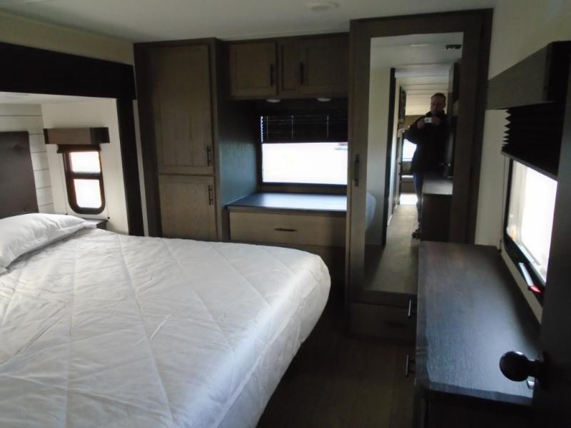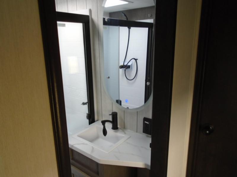 You will have amazing residential comfort in the Forest River Cherokee Arctic Wolf fifth wheels! These bed slide units have a “SuperStor” basement storage compartment to allow you to bring more gear, and they have been constructed with a “ToughBend” rigid skirt metal design, a 1x engineered wood “SuperTruss” roof structure with 3/8" decking, and a 5/8” tongue-and-groove plywood floor decking. Each model includes Leash Latch pet safety technology, an outside shower with hot/cold water and preparations for an exterior TV. The supersized central air conditioning unit (15,000 BTU) with quick cool and second oversized 15,000 BTU ducted A/C will cool your unit down in a snap when you camp in the hot summer months.