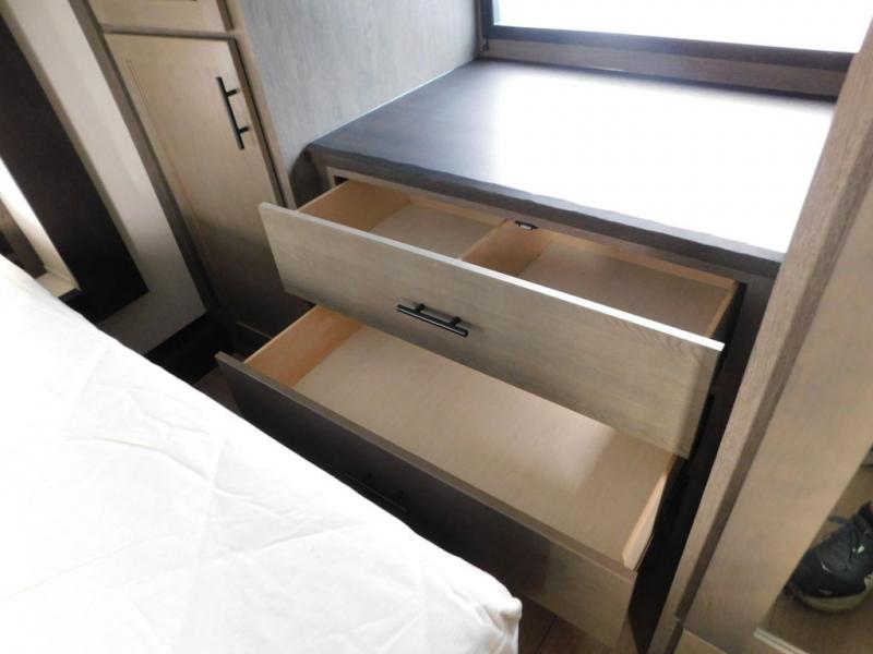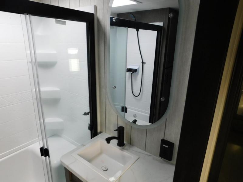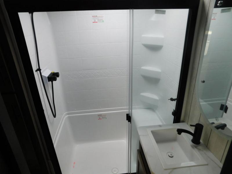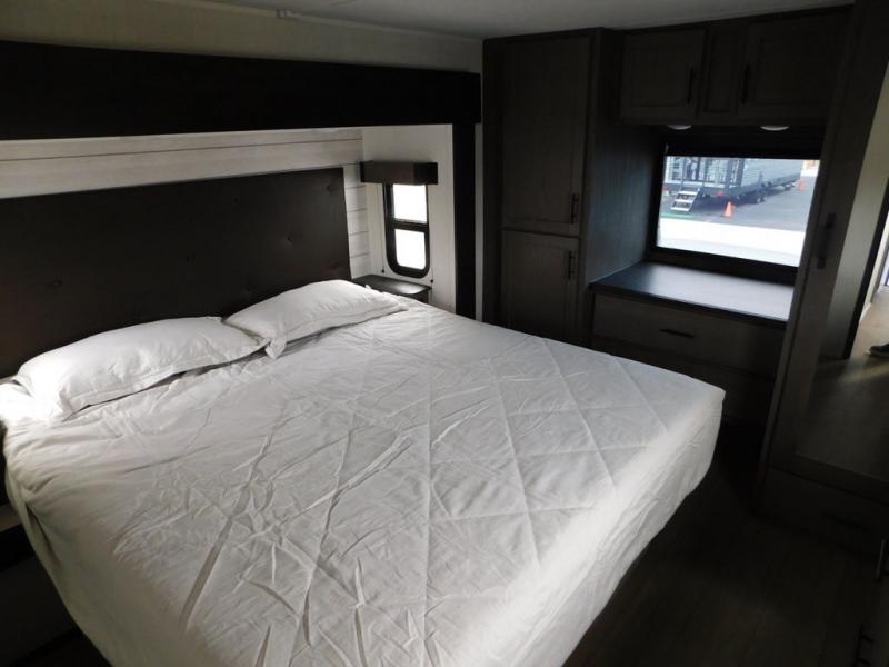 You will have amazing residential comfort in the Forest River Cherokee Arctic Wolf fifth wheels! These bed slide units have a “SuperStor” basement storage compartment to allow you to bring more gear, and they have been constructed with a “ToughBend” rigid skirt metal design, a 1x engineered wood “SuperTruss” roof structure with 3/8" decking, and a 5/8” tongue-and-groove plywood floor decking. Each model includes Leash Latch pet safety technology, an outside shower with hot/cold water and preparations for an exterior TV. The supersized central air conditioning unit (15,000 BTU) with quick cool and second oversized 15,000 BTU ducted A/C will cool your unit down in a snap when you camp in the hot summer months.
