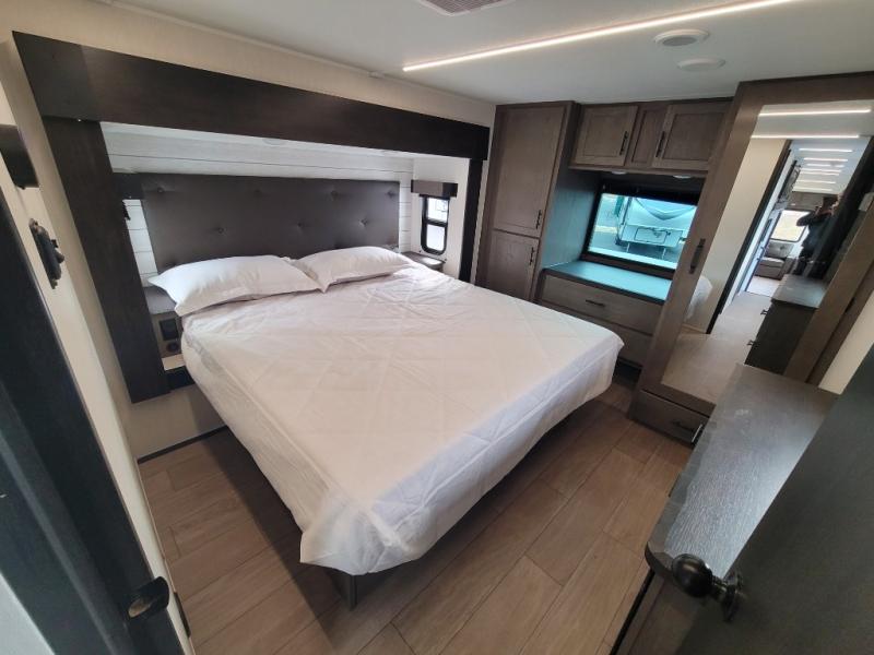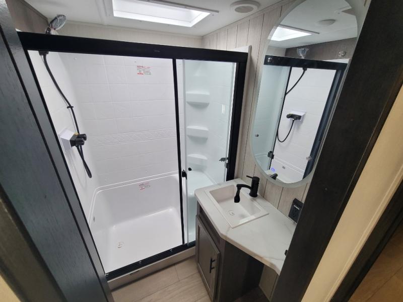 You will have amazing residential comfort in the Forest River Cherokee Arctic Wolf fifth wheels! These bed slide units have a “SuperStor” basement storage compartment to allow you to bring more gear, and they have been constructed with a “ToughBend” rigid skirt metal design, a 1x engineered wood “SuperTruss” roof structure with 3/8" decking, and a 5/8” tongue-and-groove plywood floor decking. Each model includes Leash Latch pet safety technology, an outside shower with hot/cold water and preparations for an exterior TV. The supersized central air conditioning unit (15,000 BTU) with quick cool and second oversized 15,000 BTU ducted A/C will cool your unit down in a snap when you camp in the hot summer months.