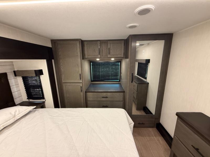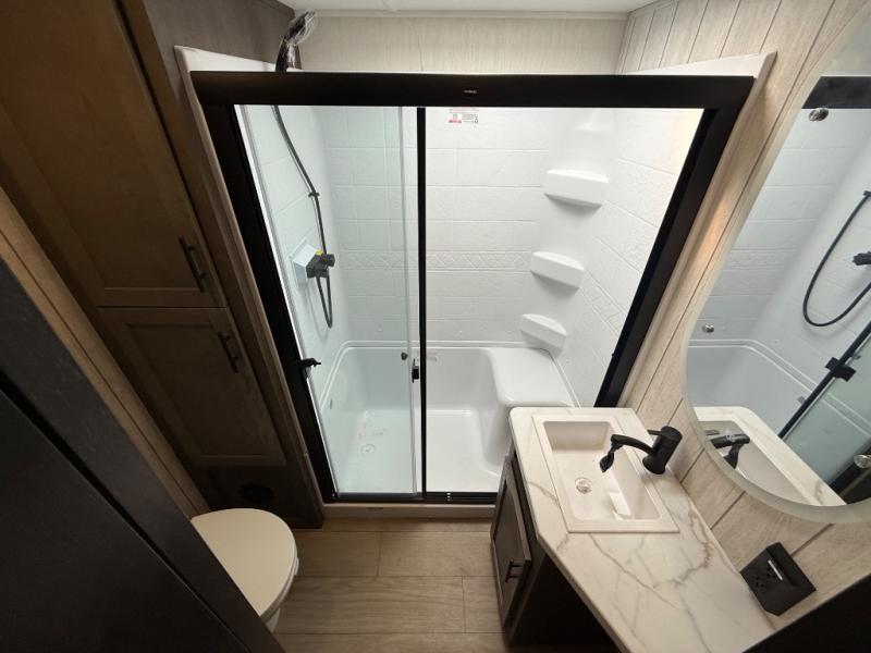 You will have amazing residential comfort in the Forest River Cherokee Arctic Wolf fifth wheels! These bed slide units have a “SuperStor” basement storage compartment to allow you to bring more gear, and they have been constructed with a “ToughBend” rigid skirt metal design, a 1x engineered wood “SuperTruss” roof structure with 3/8" decking, and a 5/8” tongue-and-groove plywood floor decking. Each model includes Leash Latch pet safety technology, an outside shower with hot/cold water and preparations for an exterior TV. The supersized central air conditioning unit (15,000 BTU) with quick cool and second oversized 15,000 BTU ducted A/C will cool your unit down in a snap when you camp in the hot summer months.