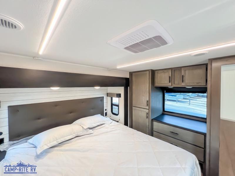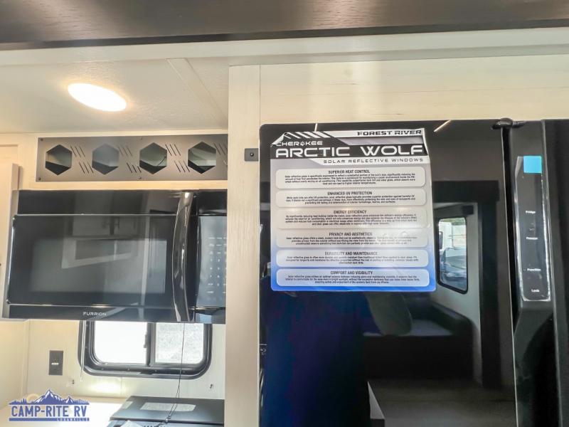 You will have amazing residential comfort in the Forest River Cherokee Arctic Wolf fifth wheels! These bed slide units have a “SuperStor” basement storage compartment to allow you to bring more gear, and they have been constructed with a “ToughBend” rigid skirt metal design, a 1x engineered wood “SuperTruss” roof structure with 3/8" decking, and a 5/8” tongue-and-groove plywood floor decking. Each model includes Leash Latch pet safety technology, an outside shower with hot/cold water, preparations for an exterior TV, and motion-sensing lighting. The supersized central air conditioning unit (15,000 BTU) with quick cool and second oversized 15,000 BTU ducted A/C will cool your unit down in a snap when you camp in the hot summer months.