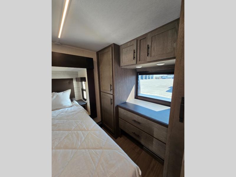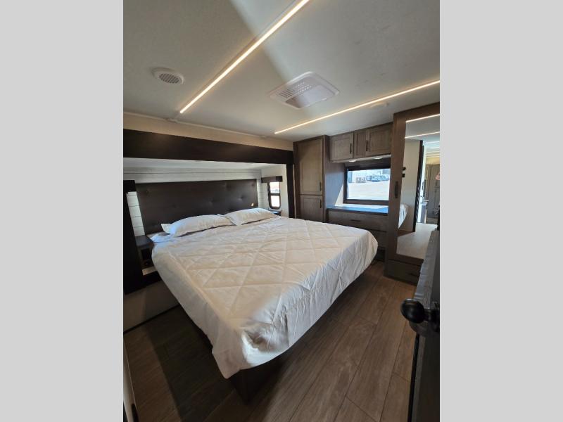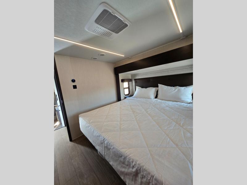 You will have amazing residential comfort in the Forest River Cherokee Arctic Wolf fifth wheels! These bed slide units have a “SuperStor” basement storage compartment to allow you to bring more gear, and they have been constructed with a “ToughBend” rigid skirt metal design, a 1x engineered wood “SuperTruss” roof structure with 3/8" decking, and a 5/8” tongue-and-groove plywood floor decking. Each model includes Leash Latch pet safety technology, an outside shower with hot/cold water and preparations for an exterior TV. The supersized central air conditioning unit (15,000 BTU) with quick cool and second oversized 15,000 BTU ducted A/C will cool your unit down in a snap when you camp in the hot summer months.