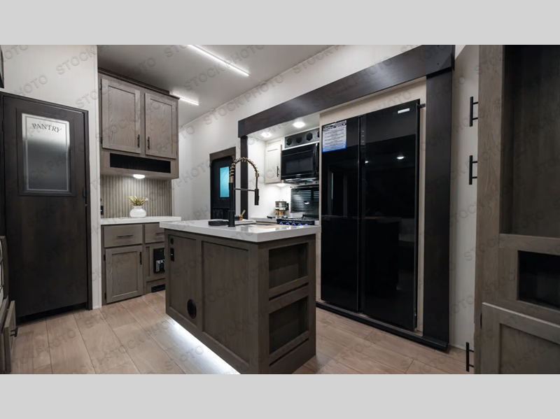This Cherokee Arctic Wolf fifth wheel is an excellent choice if you have a large family that wants to get away! Not only is there a private bedroom up front for you, but there is also a bedroom suite in the back. This suite has a 54" x 74" bed, a 60" x 80" loft bed, full under bed storage, a half bathroom all to itself, and the second exterior entry door. What a space! You'll also be highly impressed with the living area because it has a large slide that holds the tri-fold sofa and dinette. The large pantry is another feature you'll appreciate since it can store all of the food needed to feed your group, and the outside kitchen is an added bonus the cook will love!