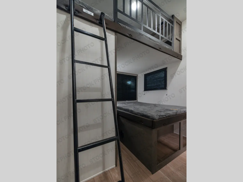 This Cherokee Arctic Wolf fifth wheel is an excellent choice if you have a large family that wants to get away! Not only is there a private bedroom up front for you, but there is also a bedroom suite in the back. This suite has a 54" x 74" bed, a 60" x 80" loft bed, full under bed storage, a half bathroom all to itself, and the second exterior entry door. What a space! You'll also be highly impressed with the living area because it has a large slide that holds the tri-fold sofa and dinette. The large pantry is another feature you'll appreciate since it can store all of the food needed to feed your group, and the outside kitchen is an added bonus the cook will love!