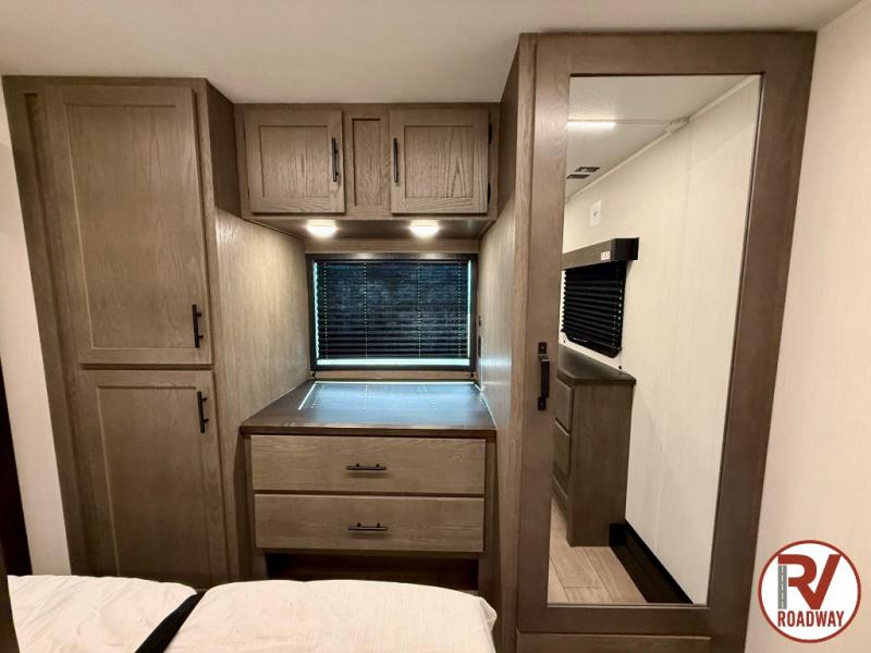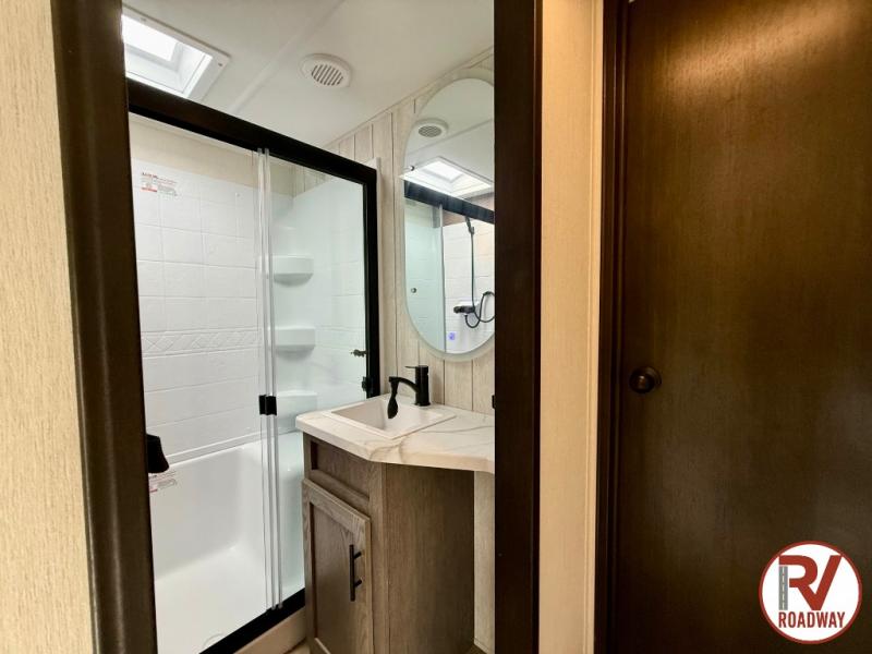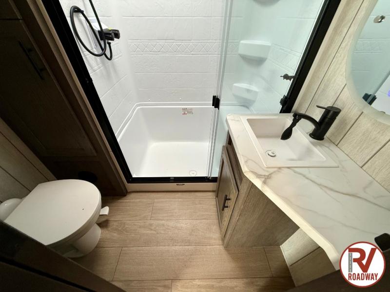 You will have amazing residential comfort in the Forest River Cherokee Arctic Wolf fifth wheels! These bed slide units have a “SuperStor” dual-cavern basement storage compartment to allow you to bring more gear, and they have been constructed with a “ToughBend” rigid skirt metal design, a 1x engineered wood “SuperTruss” roof structure with 3/8" decking, and a 5/8” tongue-and-groove plywood floor decking. Each model includes Leash Latch pet safety technology, an outside shower with hot/cold water, preparations for an exterior TV. The supersized central air conditioning unit (15,000 BTU) with quick cool and second oversized 15,000 BTU ducted A/C will cool your unit down in a snap when you camp in the hot summer months.