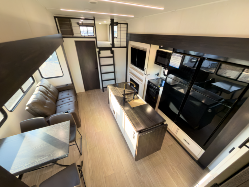 - Layout: Bunkhouse fifth wheel with defined living zones