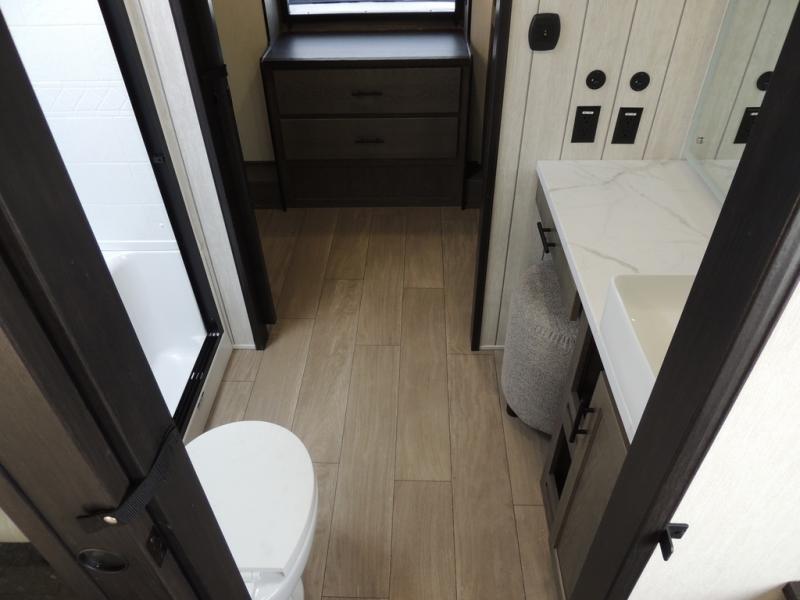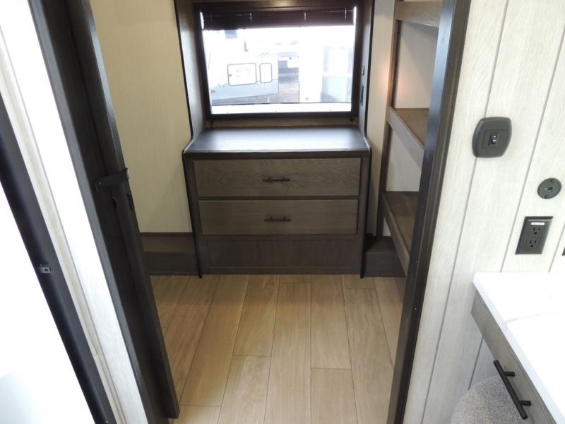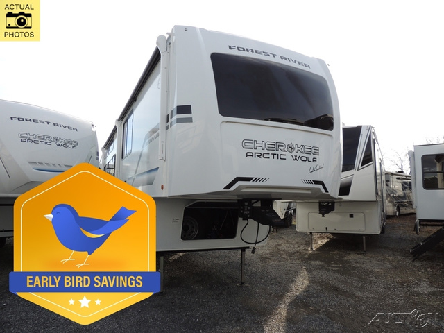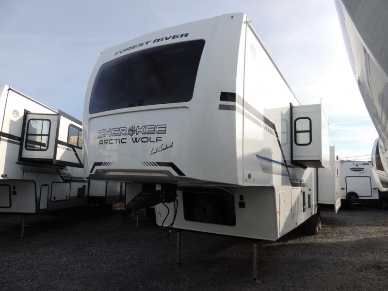 You'll have the very best time tackling outdoor adventures with the Forest River Cherokee Arctic Wolf fifth wheel! Each model has been constructed with a “ToughBend” rigid skirt metal design, Leash Latch pet safety technology, an outside shower with hot/cold water, and a 1x engineered wood “SuperTruss” roof structure with 3/8" decking for added durability. There is also an automatic leveling and stabilization system, plus 12V heat pads on all holding tanks with help withstand colder temperatures. Inside, you'll love the solid surface kitchen countertops, along with a carpetless floor design, and fully adjustable, slow rise, blackout roller shades. The on-demand tankless hot water heater will provide endless hot water and the central A/C unit with Quick Cool will ensure your comfort during those hot summer camping months. There are many more stand-out features found on these fifth wheels; check them out!