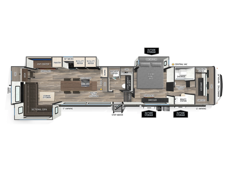Projector Over King Bed / Washer/Dryer / Island Kitchen / Front Bath & Wardrobe