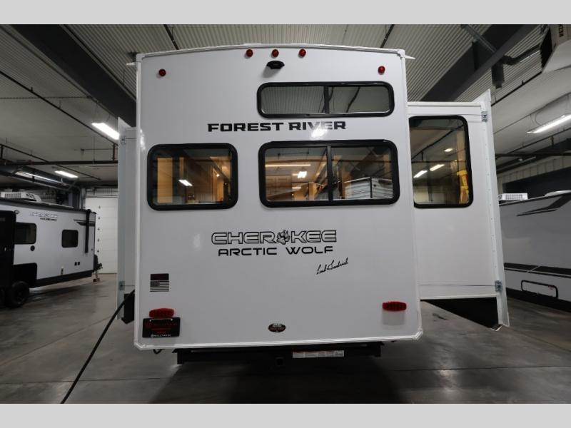 You'll have the very best time tackling outdoor adventures with the Forest River Cherokee Arctic Wolf fifth wheel! Each model has been constructed with a “ToughBend” rigid skirt metal design, Leash Latch pet safety technology, an outside shower with hot/cold water, and a 1x engineered wood “SuperTruss” roof structure with 3/8" decking for added durability. There is also an automatic leveling and stabilization system, plus 12V heat pads on all holding tanks with help withstand colder temperatures. Inside, you'll love the solid surface kitchen countertops, along with a carpetless floor design, and fully adjustable, slow rise, blackout roller shades. The on-demand tankless hot water heater will provide endless hot water and the central A/C unit with Quick Cool will ensure your comfort during those hot summer camping months. There are many more stand-out features found on these fifth wheels; check them out!