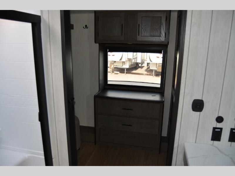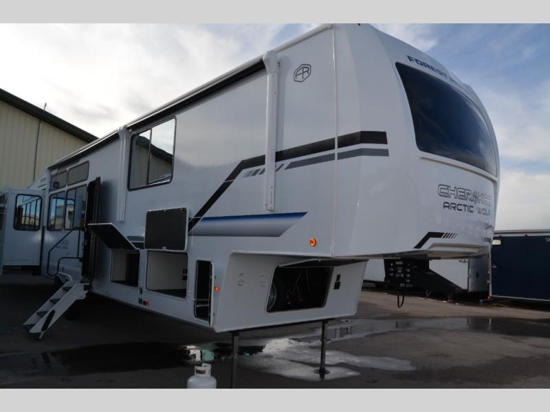 You'll have the very best time tackling outdoor adventures with the Forest River Cherokee Arctic Wolf fifth wheel! Each model has been constructed with a “ToughBend” rigid skirt metal design, Leash Latch pet safety technology, an outside shower with hot/cold water, and a 1x engineered wood “SuperTruss” roof structure with 3/8" decking for added durability. There is also an automatic leveling and stabilization system, plus 12V heat pads on all holding tanks with help withstand colder temperatures. Inside, you'll love the solid surface kitchen countertops, along with a carpetless floor design, and fully adjustable, slow rise, blackout roller shades. The on-demand tankless hot water heater will provide endless hot water and the central A/C unit with Quick Cool will ensure your comfort during those hot summer camping months. There are many more stand-out features found on these fifth wheels; check them out!