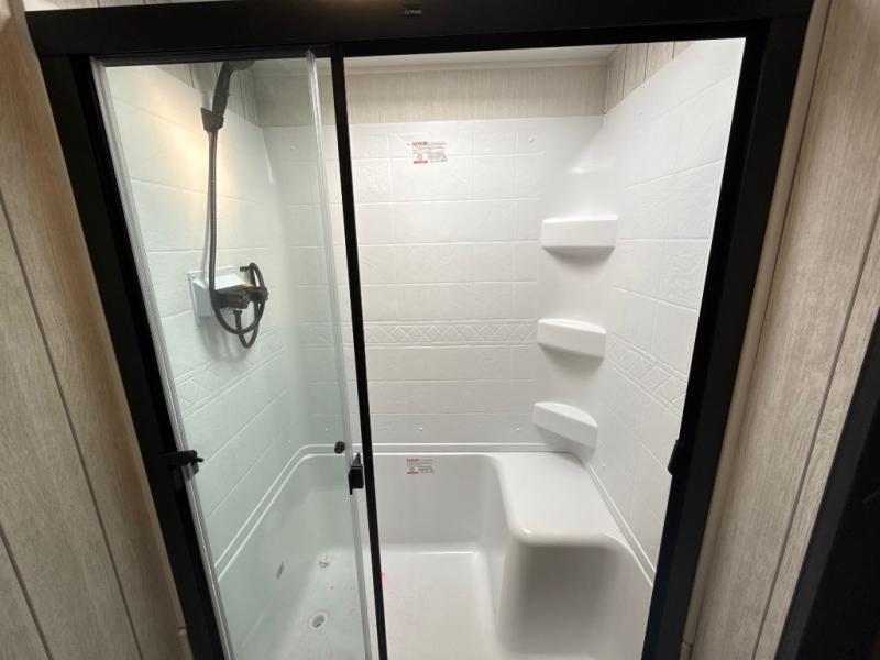You'll have the very best time tackling outdoor adventures with the Forest River Cherokee Arctic Wolf fifth wheel! Each model has been constructed with a “ToughBend” rigid skirt metal design, Leash Latch pet safety technology, an outside shower with hot/cold water, and a 1x engineered wood “SuperTruss” roof structure with 3/8" decking for added durability. There is also an automatic leveling and stabilization system, plus 12V heat pads on all holding tanks with help withstand colder temperatures. Inside, you'll love the solid surface kitchen countertops, along with a carpetless floor design, and fully adjustable, slow rise, blackout roller shades. The on-demand tankless hot water heater will provide endless hot water and the central A/C unit with Quick Cool will ensure your comfort during those hot summer camping months. There are many more stand-out features found on these fifth wheels; check them out!