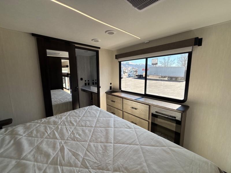 You'll have the very best time tackling outdoor adventures with the Forest River Cherokee Arctic Wolf fifth wheel! Each model has been constructed with a “ToughBend” rigid skirt metal design, Leash Latch pet safety technology, an outside shower with hot/cold water, and a 1x engineered wood “SuperTruss” roof structure with 3/8" decking for added durability. There is also an automatic leveling and stabilization system, plus 12V heat pads on all holding tanks with help withstand colder temperatures. Inside, you'll love the solid surface kitchen countertops, along with a carpetless floor design, and fully adjustable, slow rise, blackout roller shades. The on-demand tankless hot water heater will provide endless hot water and the central A/C unit with Quick Cool will ensure your comfort during those hot summer camping months. There are many more stand-out features found on these fifth wheels; check them out!