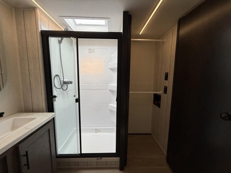 You will have amazing residential comfort in the Forest River Cherokee Arctic Wolf fifth wheels! These bed slide units have a “SuperStor” basement storage compartment to allow you to bring more gear, and they have been constructed with a “ToughBend” rigid skirt metal design, a 1x engineered wood “SuperTruss” roof structure with 3/8" decking, and a 5/8” tongue-and-groove plywood floor decking. Each model includes Leash Latch pet safety technology, an outside shower with hot/cold water, preparations for an exterior TV. The supersized central air conditioning unit (15,000 BTU) with quick cool and second oversized 15,000 BTU ducted A/C will cool your unit down in a snap when you camp in the hot summer months.