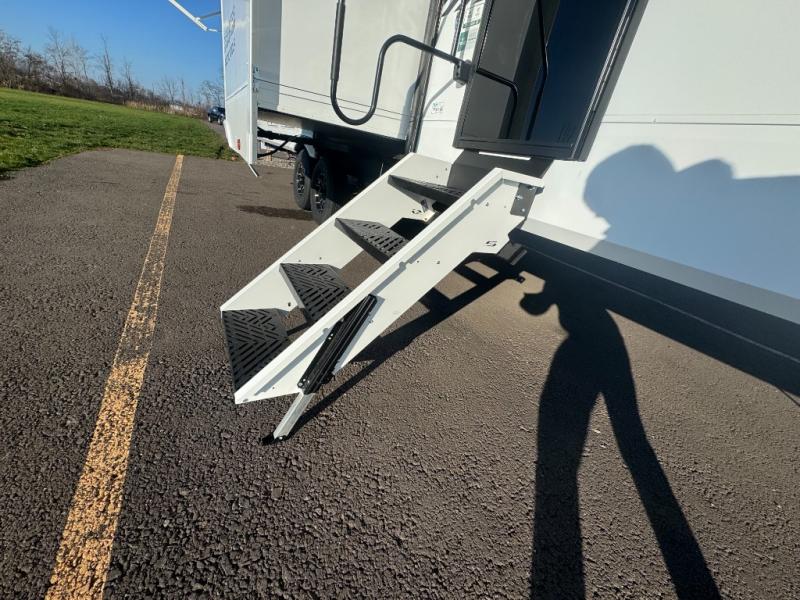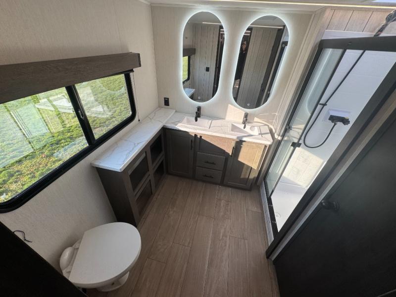You will have amazing residential comfort in the Forest River Cherokee Arctic Wolf fifth wheels! These bed slide units have a “SuperStor” basement storage compartment to allow you to bring more gear, and they have been constructed with a “ToughBend” rigid skirt metal design, a 1x engineered wood “SuperTruss” roof structure with 3/8" decking, and a 5/8” tongue-and-groove plywood floor decking. Each model includes Leash Latch pet safety technology, an outside shower with hot/cold water, preparations for an exterior TV. The supersized central air conditioning unit (15,000 BTU) with quick cool and second oversized 15,000 BTU ducted A/C will cool your unit down in a snap when you camp in the hot summer months.