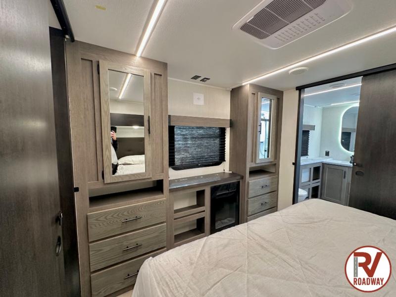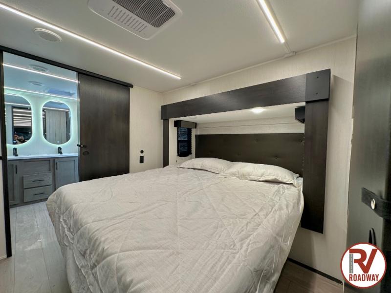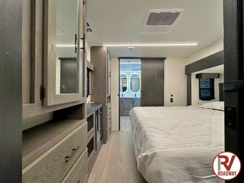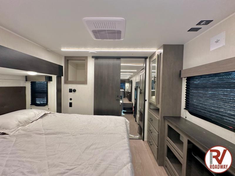 You will have amazing residential comfort in the Forest River Cherokee Arctic Wolf fifth wheels! These bed slide units have a “SuperStor” basement storage compartment to allow you to bring more gear, and they have been constructed with a “ToughBend” rigid skirt metal design, a 1x engineered wood “SuperTruss” roof structure with 3/8" decking, and a 5/8” tongue-and-groove plywood floor decking. Each model includes Leash Latch pet safety technology, an outside shower with hot/cold water, preparations for an exterior TV. The supersized central air conditioning unit (15,000 BTU) with quick cool and second oversized 15,000 BTU ducted A/C will cool your unit down in a snap when you camp in the hot summer months.