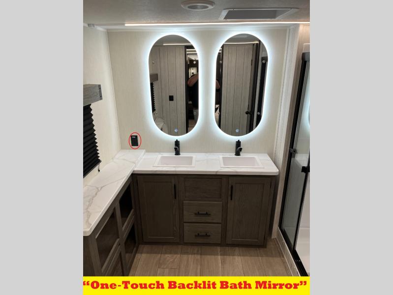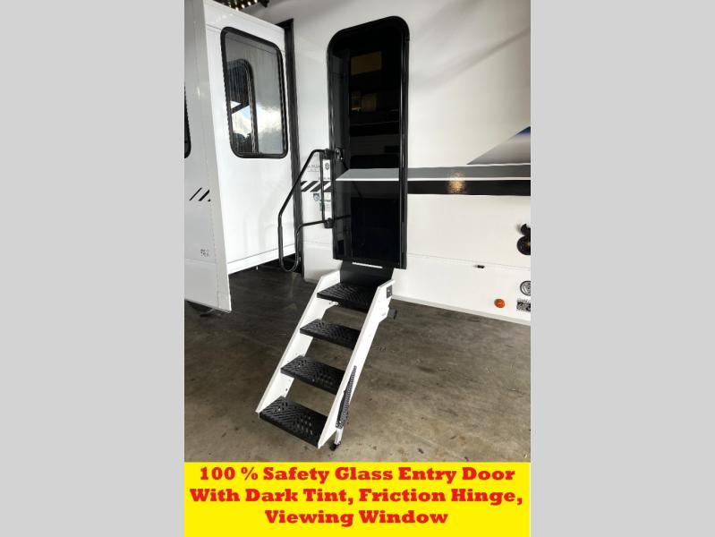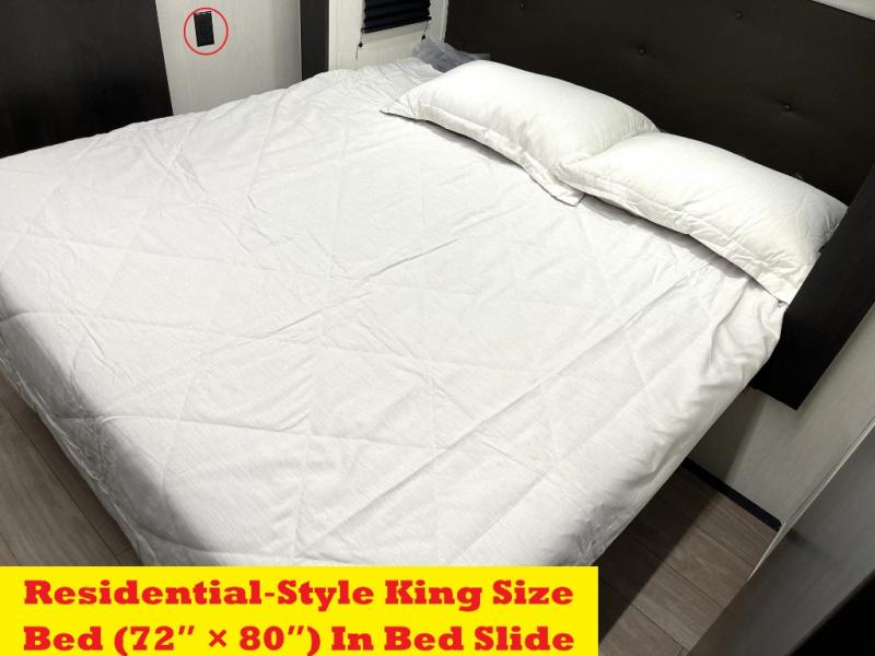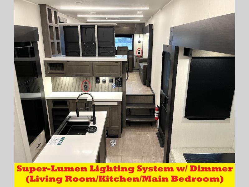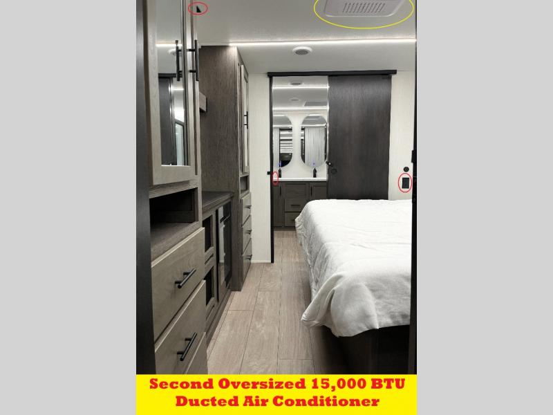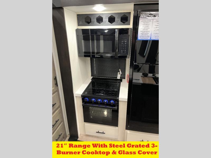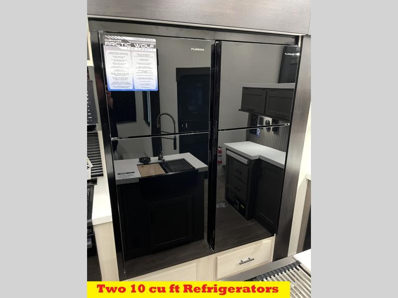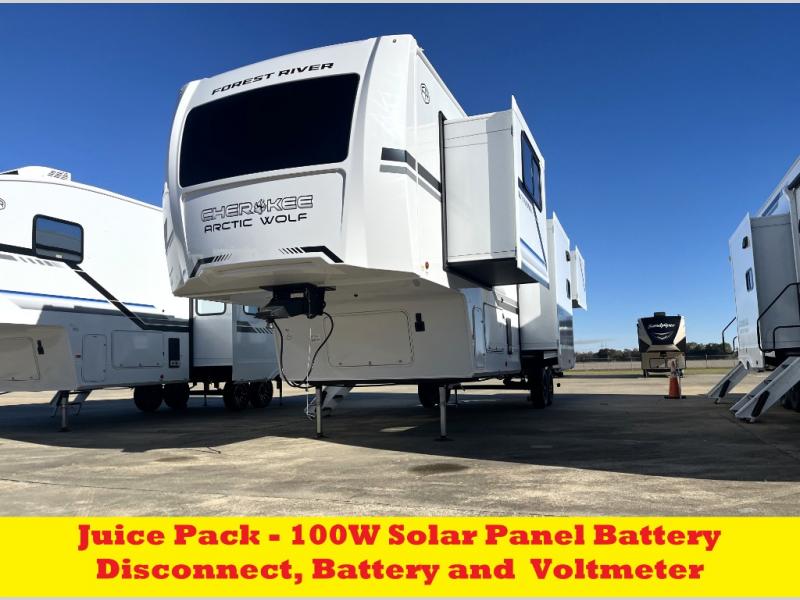 You will have amazing residential comfort in the Forest River Cherokee Arctic Wolf fifth wheels! These bed slide units have a “SuperStor” basement storage compartment to allow you to bring more gear, and they have been constructed with a “ToughBend” rigid skirt metal design, a 1x engineered wood “SuperTruss” roof structure with 3/8" decking, and a 5/8” tongue-and-groove plywood floor decking. Each model includes Leash Latch pet safety technology, an outside shower with hot/cold water, preparations for an exterior TV. The supersized central air conditioning unit (15,000 BTU) with quick cool and second oversized 15,000 BTU ducted A/C will cool your unit down in a snap when you camp in the hot summer months.