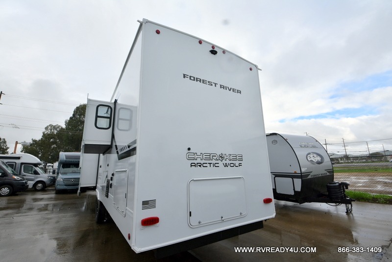 You will have amazing residential comfort in the Forest River Cherokee Arctic Wolf fifth wheels! These bed slide units have a “SuperStor” basement storage compartment to allow you to bring more gear, and they have been constructed with a “ToughBend” rigid skirt metal design, a 1x engineered wood “SuperTruss” roof structure with 3/8" decking, and a 5/8” tongue-and-groove plywood floor decking. Each model includes Leash Latch pet safety technology, an outside shower with hot/cold water, preparations for an exterior TV. The supersized central air conditioning unit (15,000 BTU) with quick cool and second oversized 15,000 BTU ducted A/C will cool your unit down in a snap when you camp in the hot summer months.