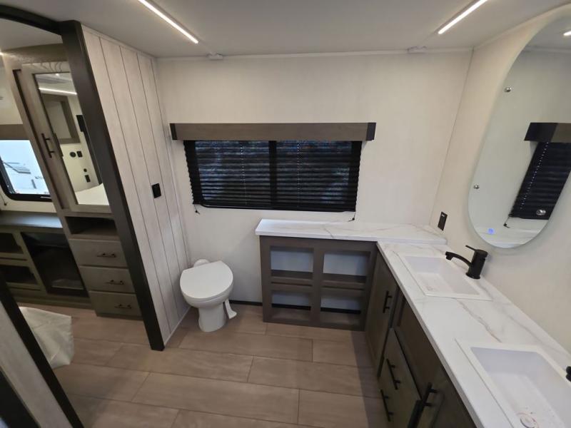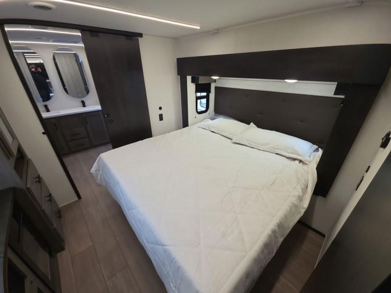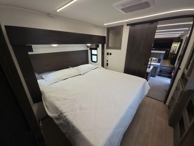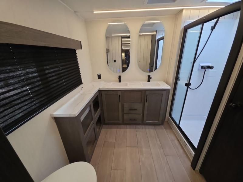 You will have amazing residential comfort in the Forest River Cherokee Arctic Wolf fifth wheels! These bed slide units have a “SuperStor” basement storage compartment to allow you to bring more gear, and they have been constructed with a “ToughBend” rigid skirt metal design, a 1x engineered wood “SuperTruss” roof structure with 3/8" decking, and a 5/8” tongue-and-groove plywood floor decking. Each model includes Leash Latch pet safety technology, an outside shower with hot/cold water, preparations for an exterior TV. The supersized central air conditioning unit (15,000 BTU) with quick cool and second oversized 15,000 BTU ducted A/C will cool your unit down in a snap when you camp in the hot summer months.
