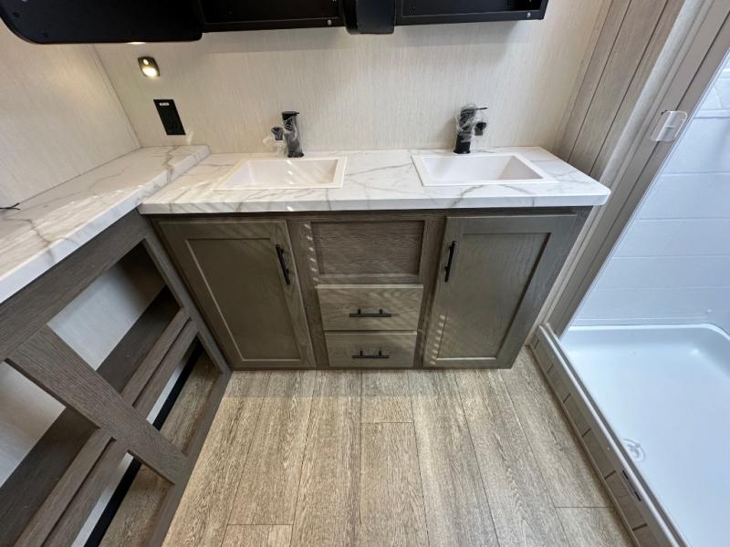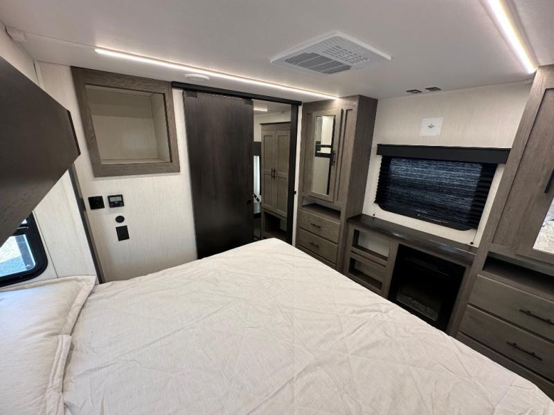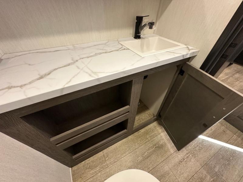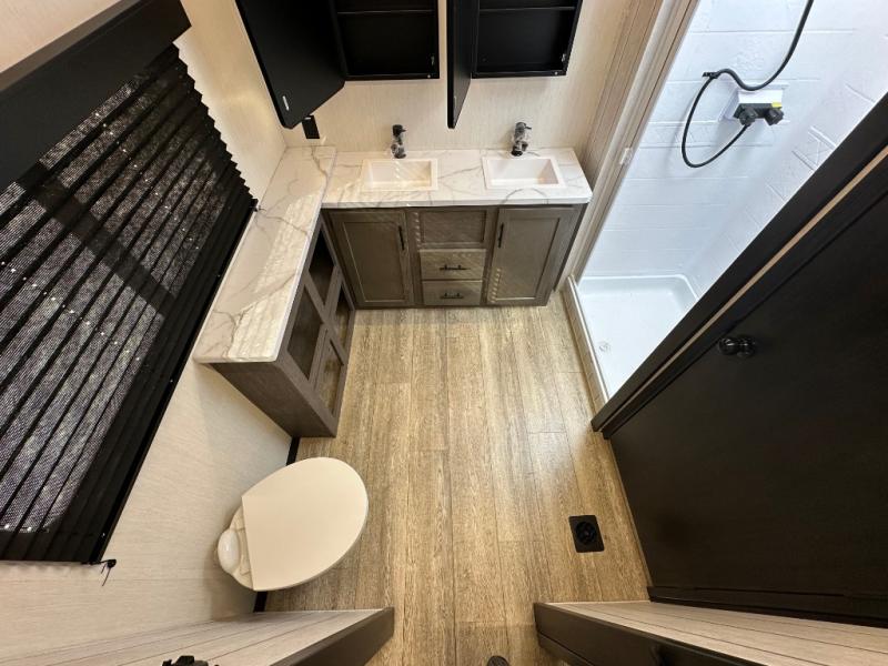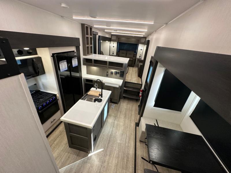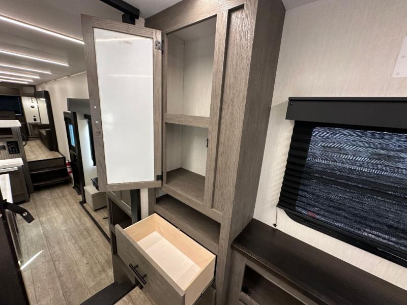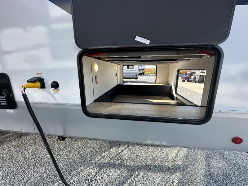 You will have amazing residential comfort in the Forest River Cherokee Arctic Wolf Suite fifth wheels! These units have a “SuperStor” dual-cavern basement storage compartment to allow you to bring more gear, and they have been constructed with a “ToughBend” rigid skirt metal design, a 1x engineered wood “SuperTruss” roof structure with 3/8" decking, and a 5/8” tongue-and-groove plywood floor decking. Each model includes Leash Latch pet safety technology, an outside shower with hot/cold water, preparations for an exterior TV, motion-sensing lighting, and a smart monitor panel with smart phone Bluetooth connectivity. The supersized central air conditioning unit (15,000 BTU) with quick cool and second oversized 15,000 BTU ducted air conditioner will cool your unit down in a snap when you camp in the hot summer months.