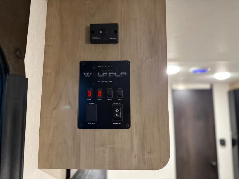 Each one of these Forest River Cherokee Wolf Pup Black Label travel trailers are lightweight and easy to tow! They are fully self contained with ample tank capacities, an abundance of storage space, and filled with at home amenities. The aerodynamic smooth radius front profile, the Power Gear frame technology, and the space saver rail design make them easier to maneuver. You will also appreciate the seamless roofing membrane with heat reflectivity to keep the sun from making your unit a hot box. The tongue and groove plywood flooring will hold up for years of fun and the USB charging stations help to keep your electronics at 100% while you're away. The Black Label Package includes a frameless window package, hung fiberglass gel coat sided walls, thermo-foil arctic insulation, and more!