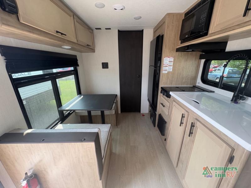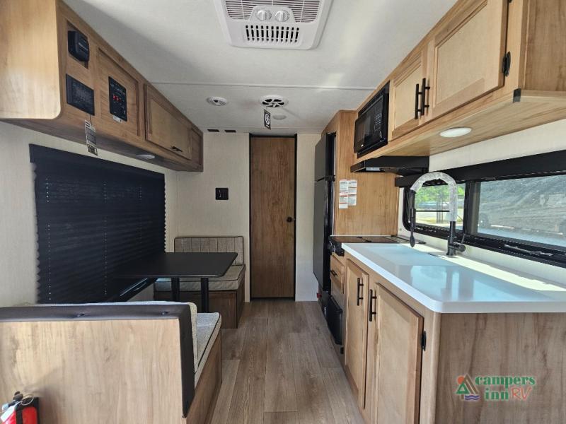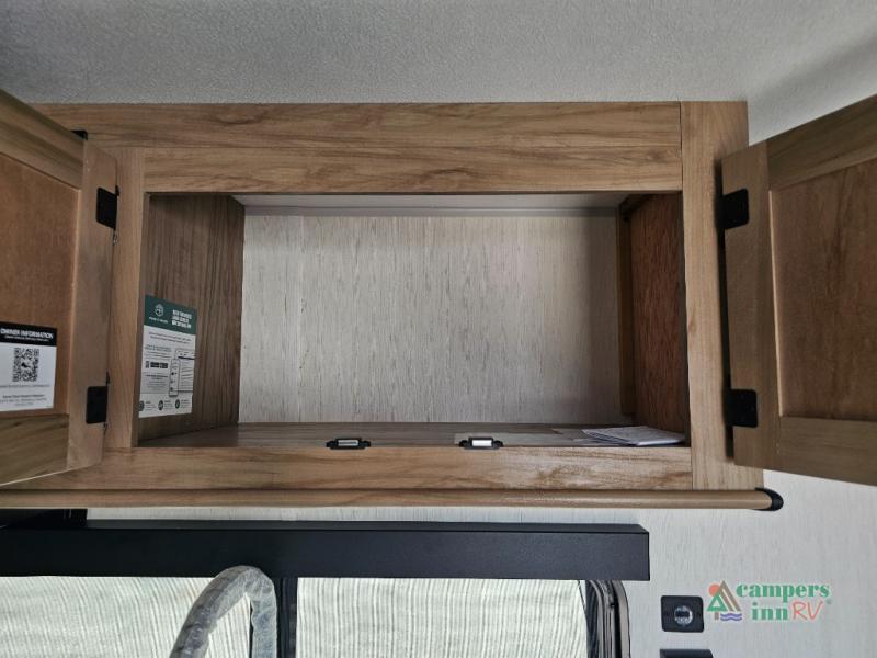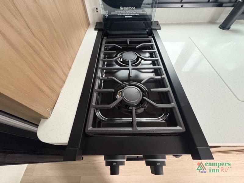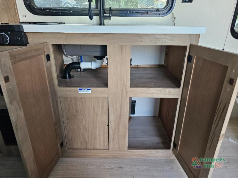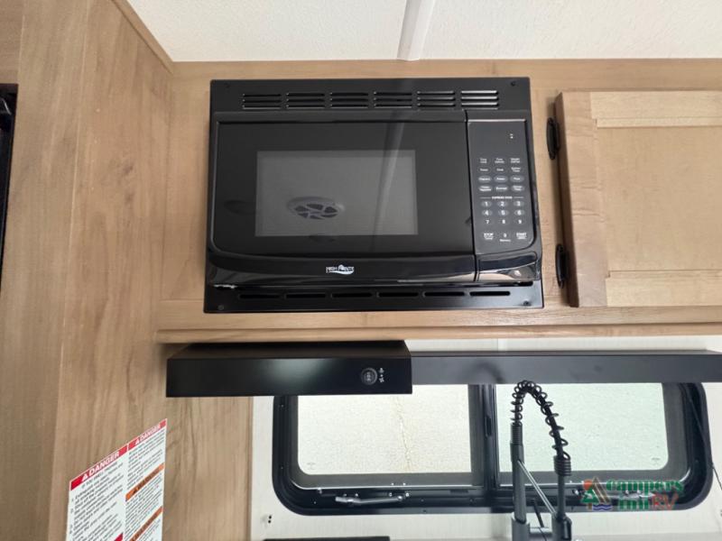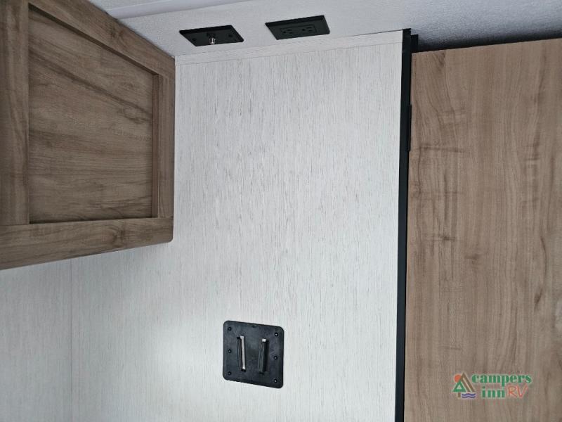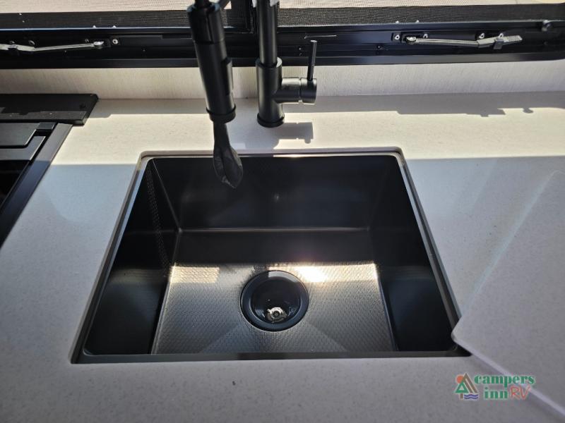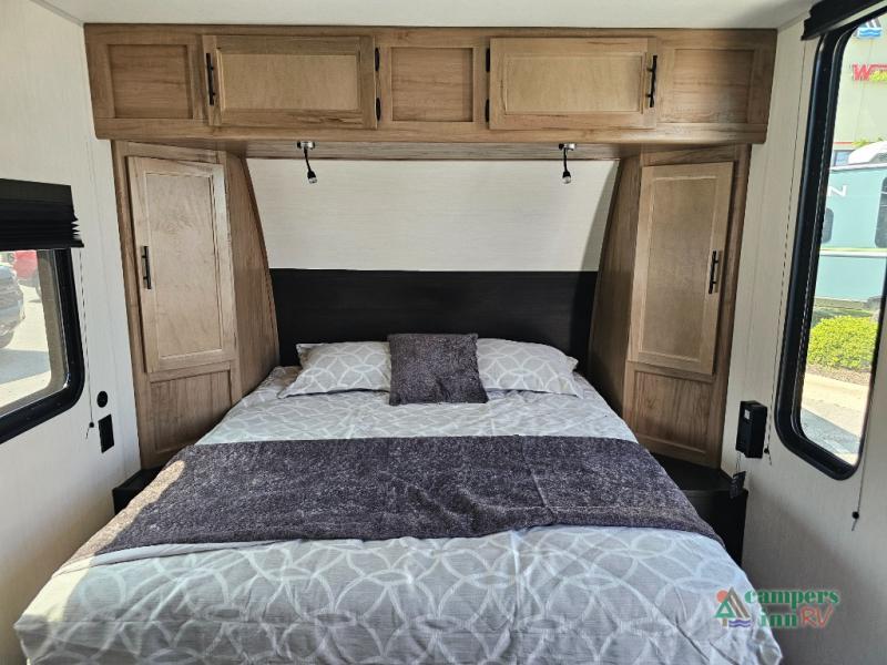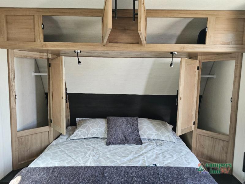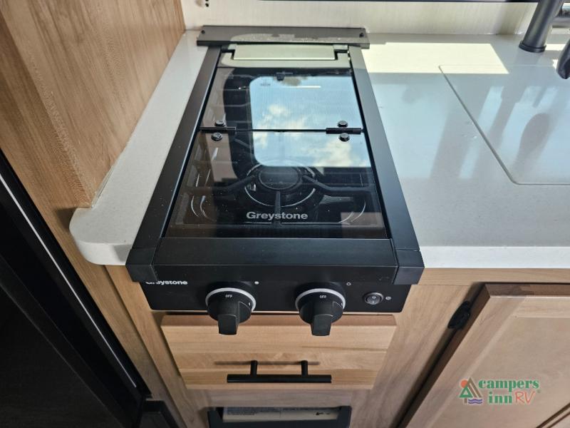 You will love camping in this travel trailer with your own queen bed up front! Freshen up each morning in the full rear bathroom with the tub/shower, toilet, and sink. Fill your bellies with the perishables stored in the 12V high efficiency refrigerator and cook them on the high output cooktop. You could even prepare a meal while breathing in some fresh air at the outside mini kitchen while staying protected by the 12' power awning. Easily store all of your outdoor gear in the outside storage area too!